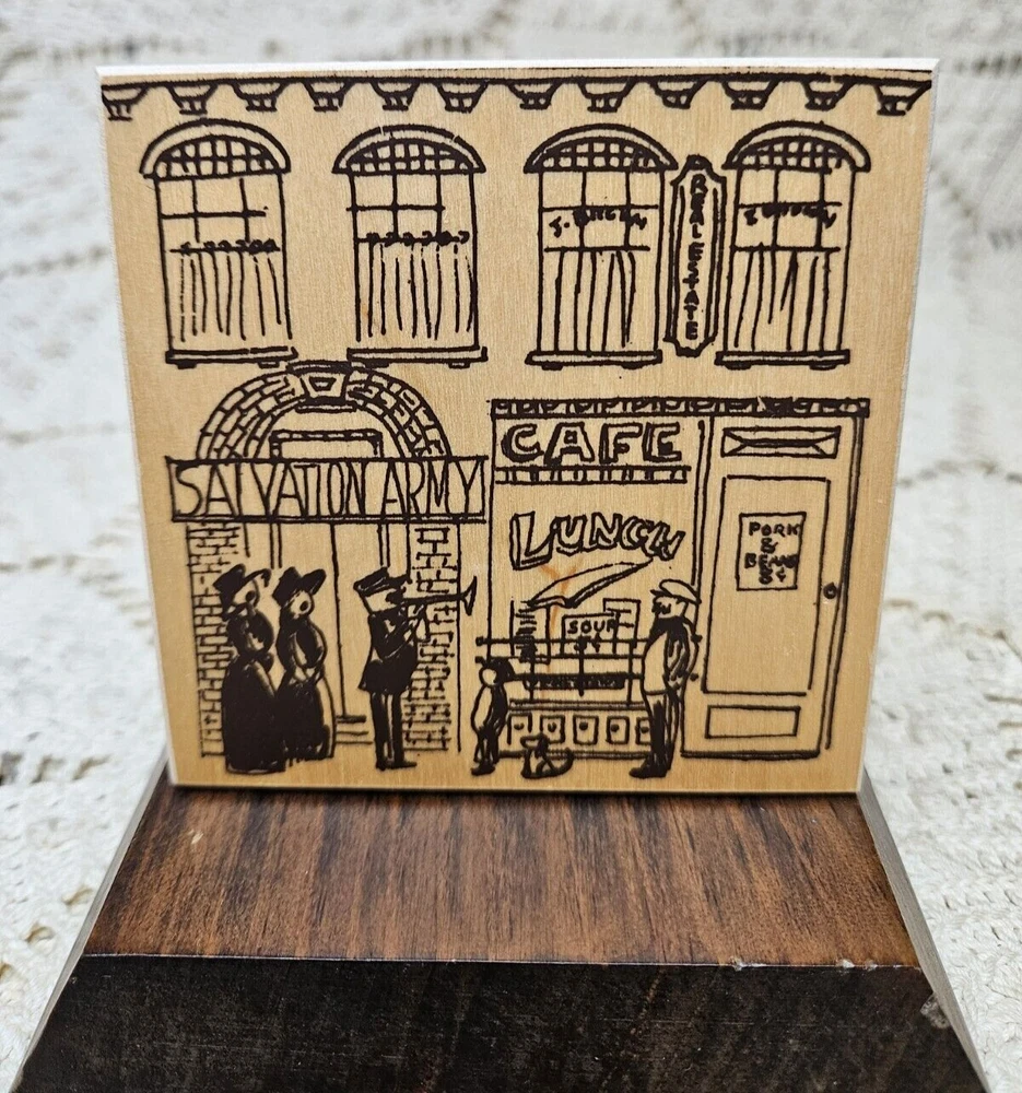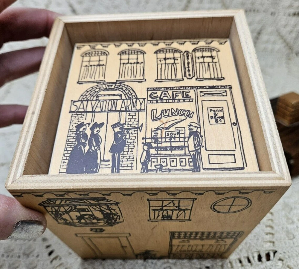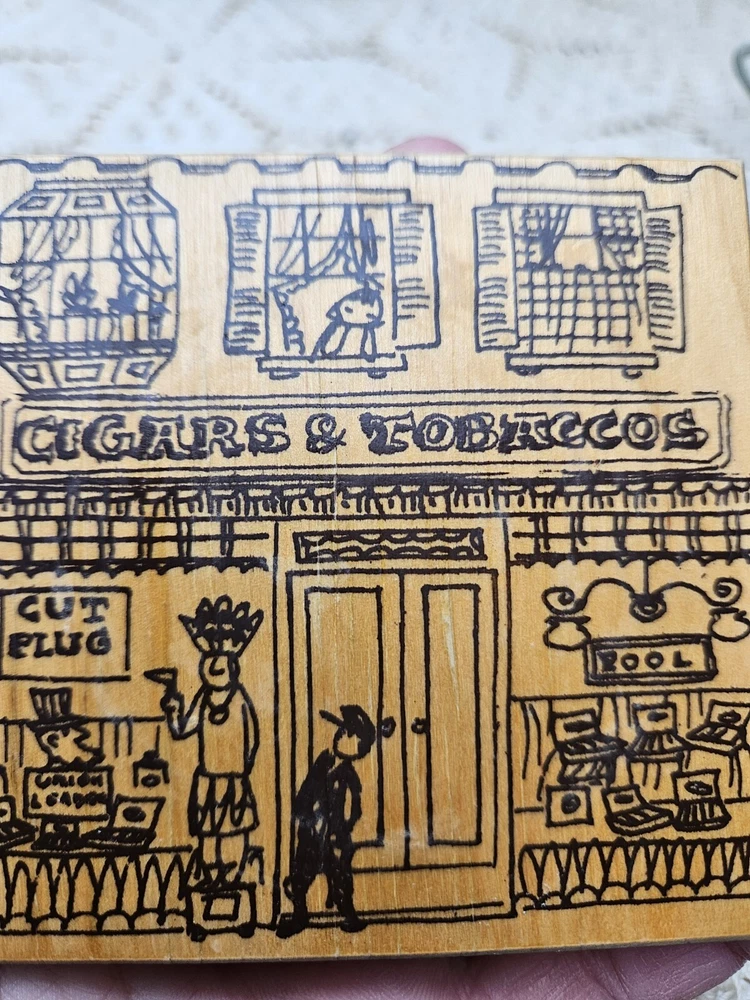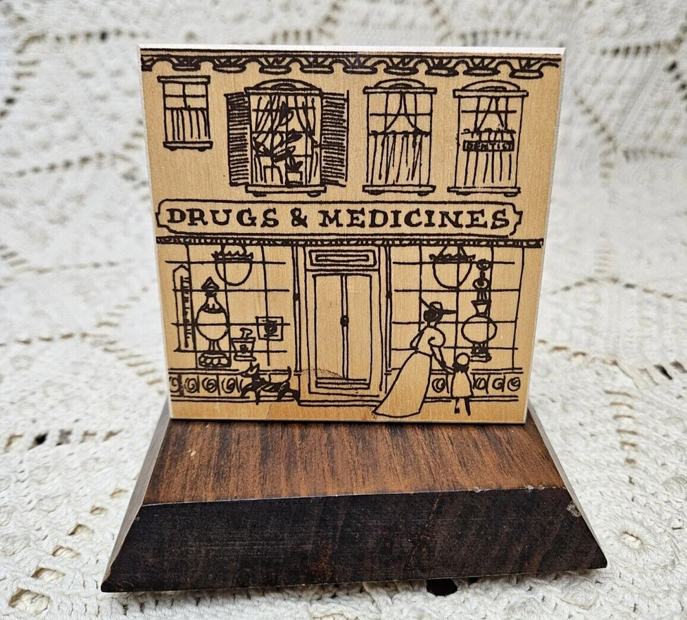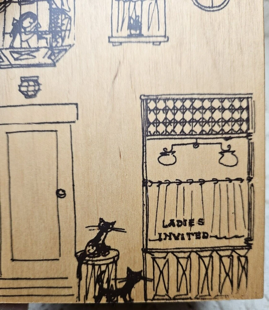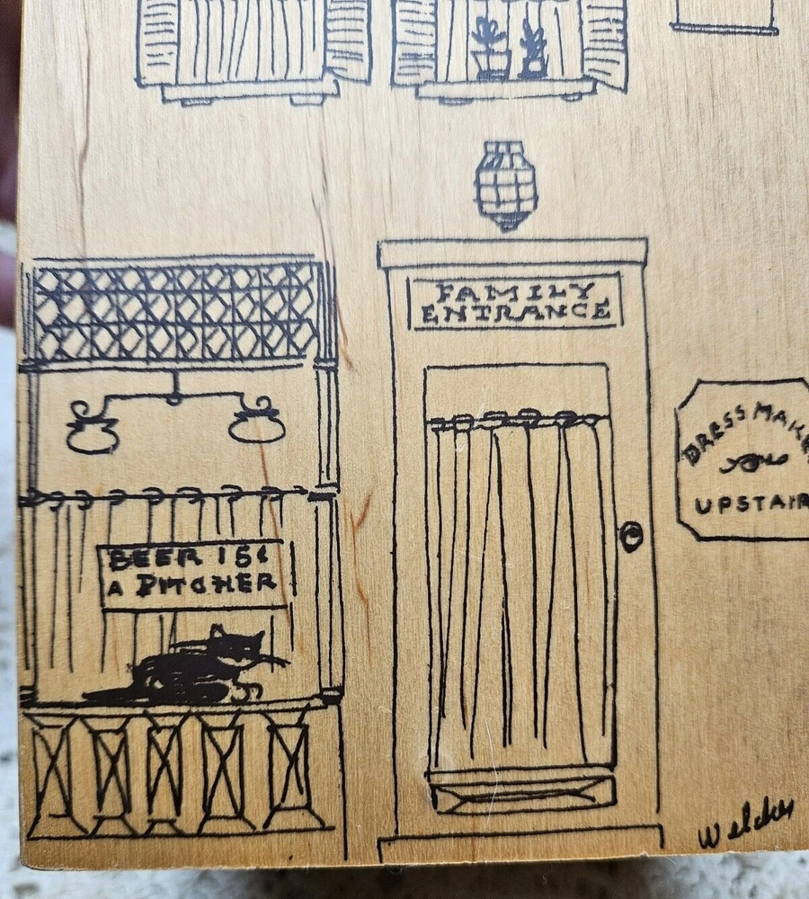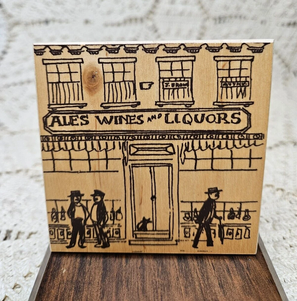 I absolutely love this vintage coaster set! The charming 1978 Rosalind Welcher artwork brings so much character with its whimsical saloon and storefront designs. The wooden coasters are sturdy and unique—only two show slight wear, while the rest look untouched. The canister itself is a decorative piece with its old-timey saloon design. A rare find that adds nostalgia and style to any home bar or coffee table. Perfect for collectors or anyone who appreciates retro flair!