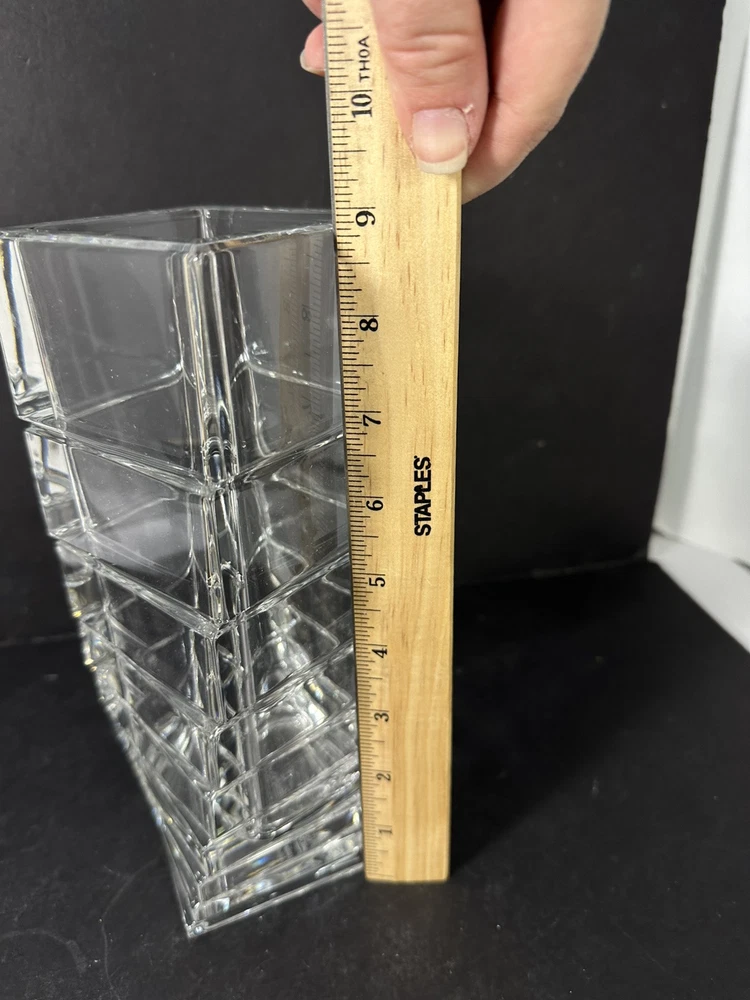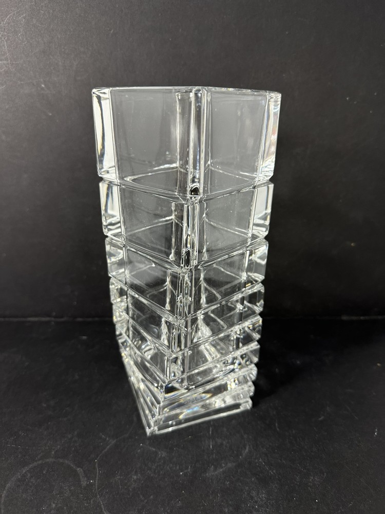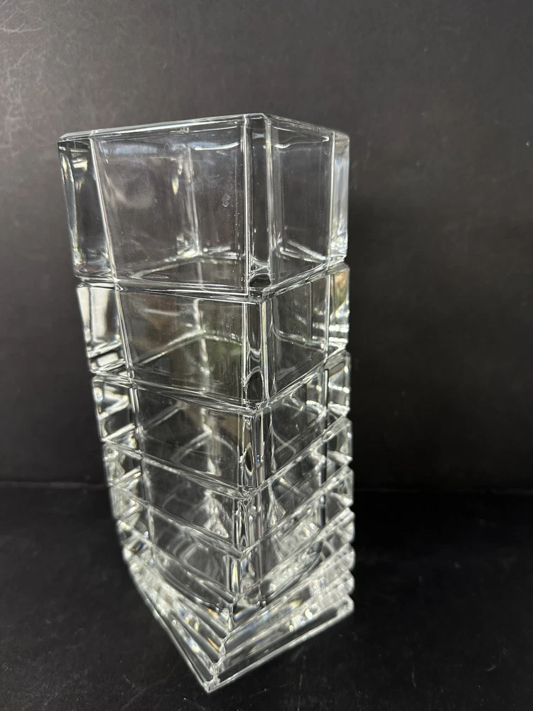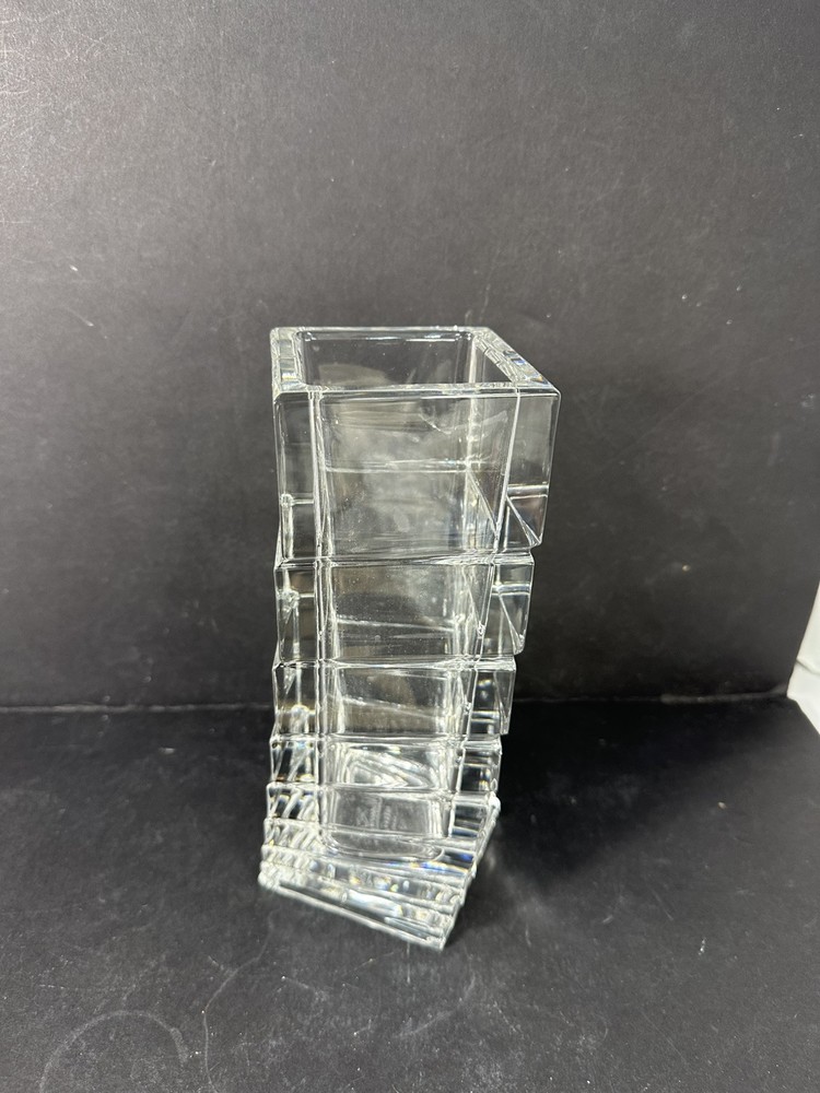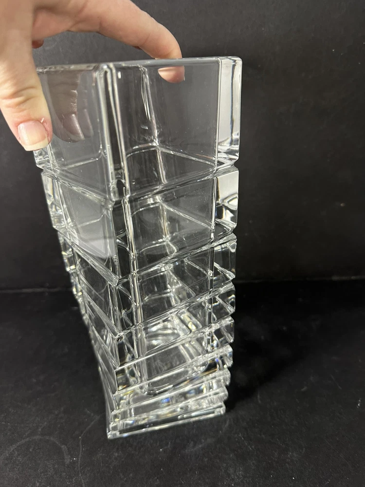 This stunning Rosenthal Studio Line vase is a true statement piece! The twisted stacked squares design catches the light beautifully, giving it a luxurious vintage charm. The crystal is clear and flawless, with no visible chips or scratches—just pure elegance. Perfect for displaying flowers or as a standalone art piece. A fantastic find for collectors or anyone who appreciates fine craftsmanship!
