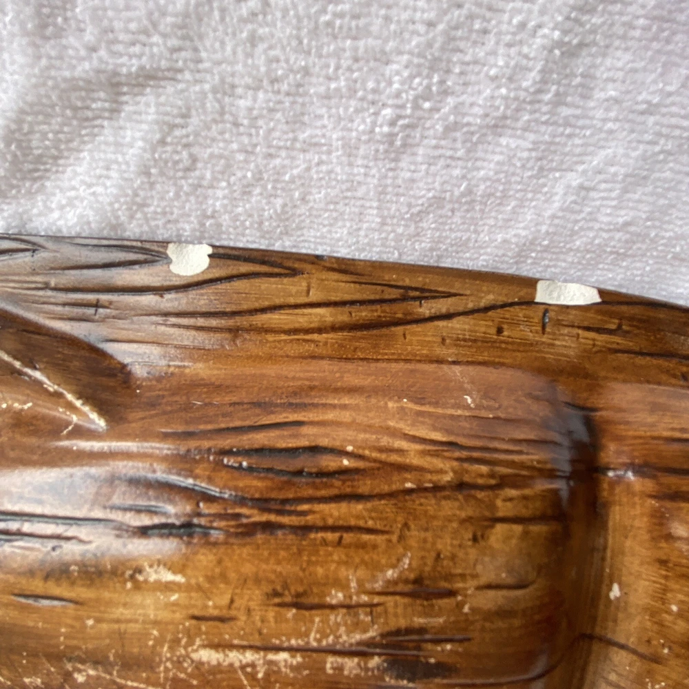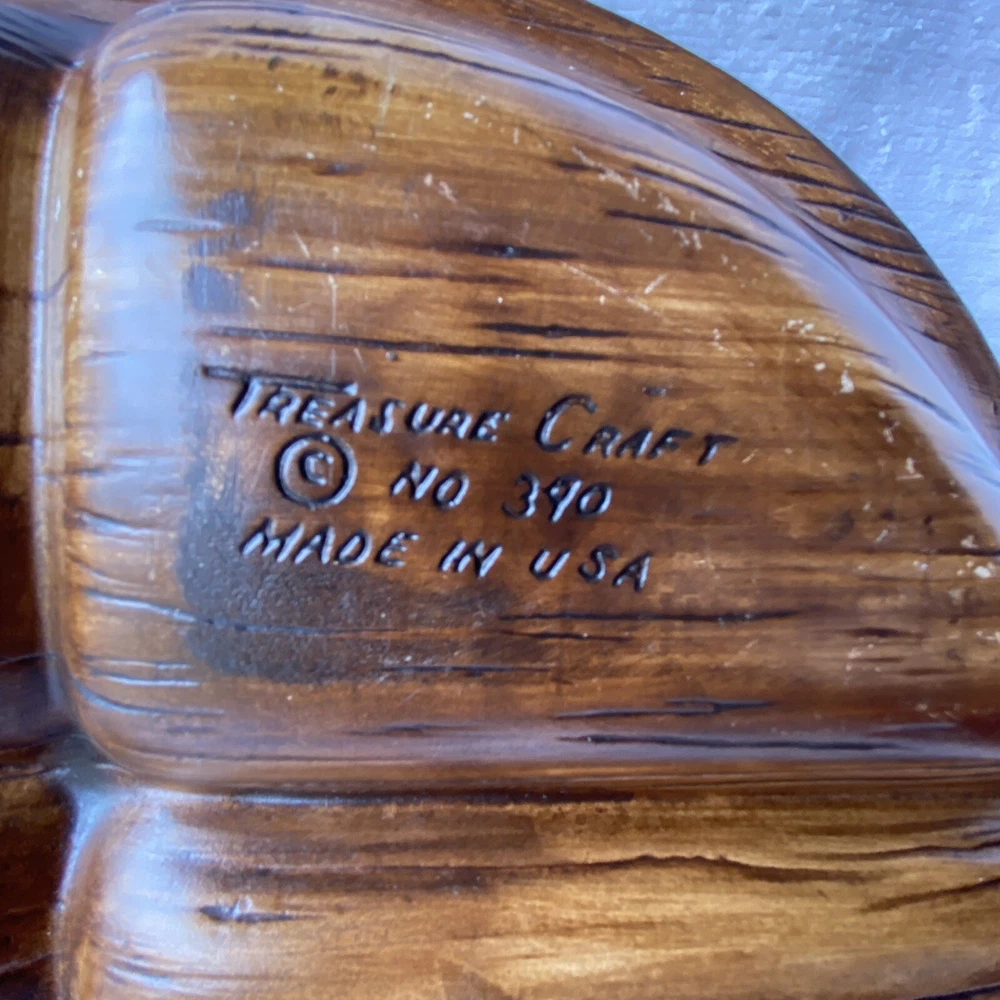 Vintage Treasured Craft ceramic glazed fish shaped tray. Large 4 sectioned tray and small dip dish. Glazed fronts with red yellows and browns. On back, Smalls chips. See photos. Made in USA....