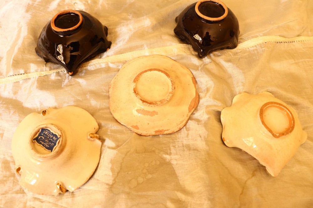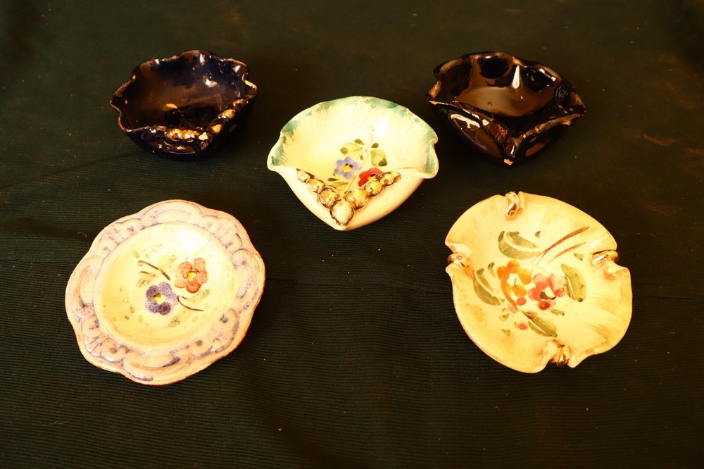 Vintage Set of 5 Pottery Ashtrays Shaped Scalloped, Floral Design Hand-Painted This beautiful set of 5 vintage pottery ashtrays features a charming floral design, each piece hand-painted with intricate detail. Crafted in an art deco style, these ashtrays are a wonderful addition to any collection of decorative pottery and glassware. **Features:** - **Hand-Painted Floral Design:** Each ashtray boasts a unique, hand-painted floral pattern that adds an elegant touch to any room. - **Scalloped Edges:** The scalloped shape of these ashtrays gives them a distinctive and stylish appearance. - **High-Quality Pottery:** Made from durable and high-quality pottery material, these ashtrays are built to last. - **Art Deco Style:** The design elements reflect the popular art deco style, making them perfect for vintage enthusiasts. - **Original Pieces:** Manufactured in 1970 by an Egyptian art pottery studio, these ashtrays are original and unique pieces. **Specifications:** - **Material:** Pottery - **Design:** Hand-painted floral pattern - **Shape:** Scalloped edges - **Era:** 1970s - **Style:** Art deco - **Country of Manufacture:** Unknown - **Quantity:** Set of 5 ashtrays - **Condition:** Good vintage condition (see pictures for more details) **Why You'll Love It:** - **Vintage Charm:** These ashtrays bring a touch of vintage elegance and charm to any collection or room. - **Functional and Decorative:** Suitable for use with cigarettes, these ashtrays are both practical and decorative. - **Unique Collectible:** As original pieces from the 1970s, they make a unique addition to any collection of decorative pottery. **Condition Note:** The set is in good vintage condition. Please see pictures for more details on their condition. Enhance your collection with this exquisite set of 5 hand-painted pottery ashtrays, perfect for adding a touch of elegance and vintage charm to your home. S a h S a h Policy We Are Following All Policies Of e B a y We are a family of specialists in collecting Antique, vintage, handmade pieces from ancient Pharaonic Egypt, and these pieces we collect from ancient Egyptian Palaces and markets like The Lady Aisha Market, Jamalia Market, and Jewish Quarter, and these markets that were established for many centuries. Some of these pieces in my store are from the beginning of life on earth. Important note: We work legally according to Egyptian laws. We will not sell any original artifacts of Egyptian heritage that are not legally authorized according to the laws of the Egyptian Ministry of Antiquities. We sell only authorized antiques and collectibles in Egypt. CONTACT US If you have any questions contact us at any time we are available 24 hours. Please feel free to contact us. Feel free to visit our store and discover the most beautiful Antiques from all over the world. ABOUT OUR STORE Don't worry about dealing with us. We have worked on eBay for many years and we are an authentic source. We deal with you honestly. SHIPPING & PROCESSING TIME We take great care packaging every item to ensure safe shipment to you. Once your order has been processed and we have received cleared payment, your item will be dispatched as soon as possible. If you desire a combined shipping rate, please wait until you receive your combined shipping quote from us prior to payment. A tracking number will be sent via message, after despatch. We ship international orders through UPS, FedEx, DHL, Aramex, Egypt Post. RETURN POLICY Please see the details in the listing for information on our return policy. You can feel confident that what you purchase is backed up by our guarantee and your complete satisfaction is our goal. Please contact us before leaving feedback and we will work with you to resolve any issues. How do I return my product? Please contact us through eBay messages or eBay's automated returns system. PAYMENT Payment is due within 3 days of purchase. We accept all ways of payment that are available on eBay. You should understand that we are a legal, registered business. TERMS & CONDITIONS We guarantee that the goods are as described in the above listing. We pride ourselves on our customer service. In the rare event that you have a problem with your item please contact us and we will be happy to help. International Buyers: Import duties, taxes, and shipping charges are the buyer's responsibility. Track Page Views With Auctiva's Counter