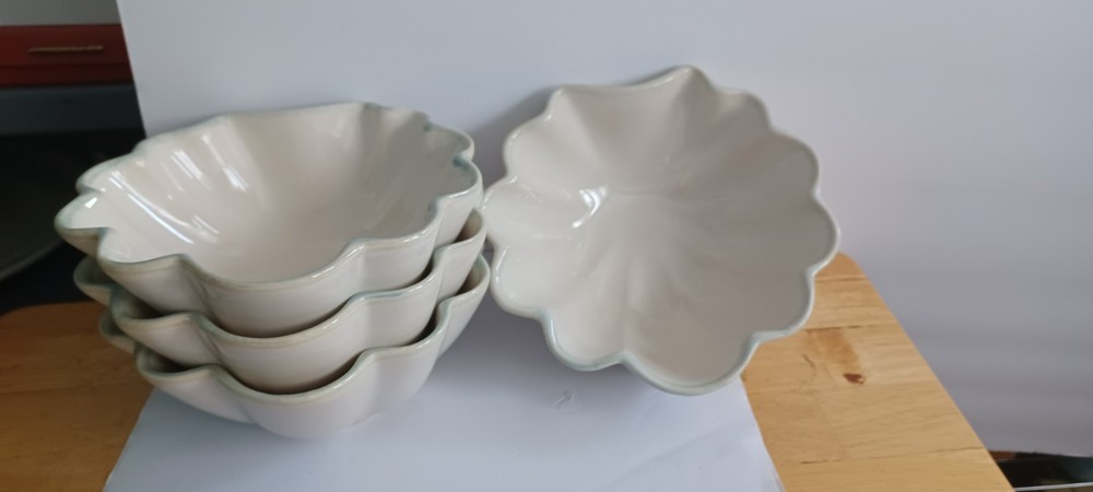 The "Vintage Shoreline Collection Home Studio Shell Shaped Dishes Set Of Four" is a set of four ceramic shell-shaped dishes from the Shoreline brand. These multicolor dishes have a glossy finish and are dishwasher safe. Made in China using art pottery production style, they feature a unique design that adds a decorative touch to any table setting. Perfect for serving appetizers, desserts, or small bites, these dishes are an original piece from the Shoreline Collection.
