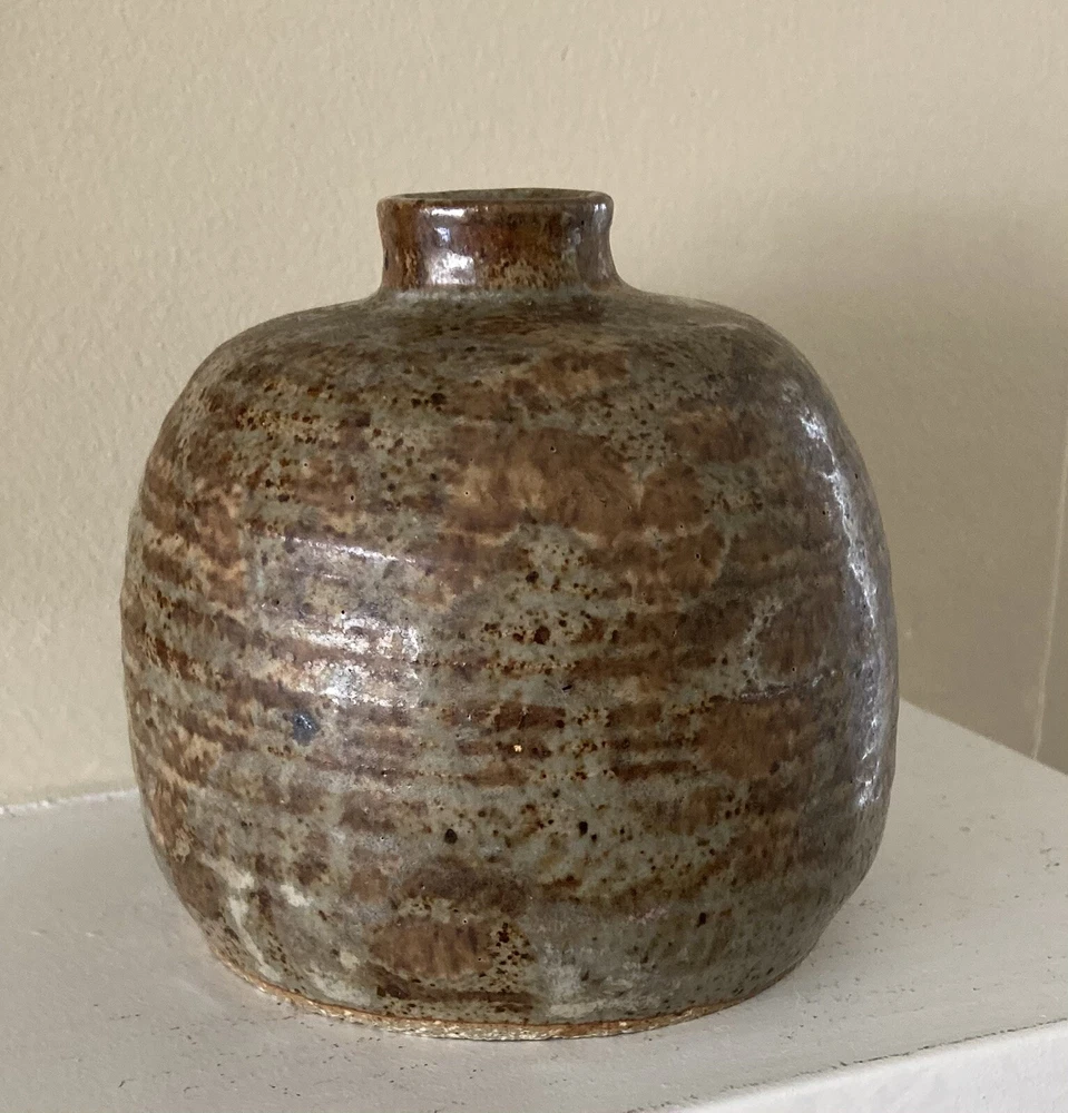 Vintage Signed Studio Art Pottery Beehive Inkwell Bottle Shaped Vase Earth Color. Wood fired beehive/jug stoneware. 4” tall, 3 3/4” base, 1” mouth. Preowned/Condition is "Used". Please use zoom to see detail and condition. Great little brown jug & fits with any decor. Shipping in Continental US only. Shipped with USPS Ground Advantage.