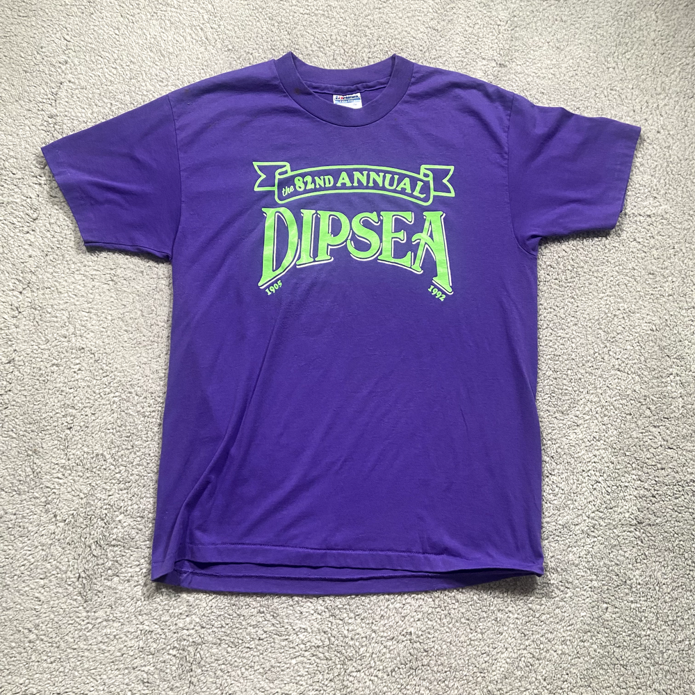 This vintage tee is a total gem! The single-stitch detail gives it that authentic retro feel, and the fabric is super soft with just the right amount of wear for character. The 82nd Annual Dip Sea print is crisp and fun—perfect for casual wear or adding to a collection. Fits true to size, super comfy, and gets compliments every time I wear it. Love the history behind it too! A must-have for vintage lovers.
