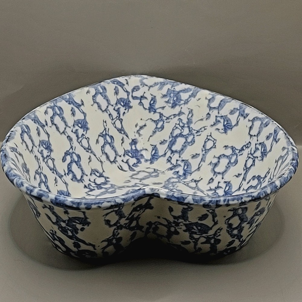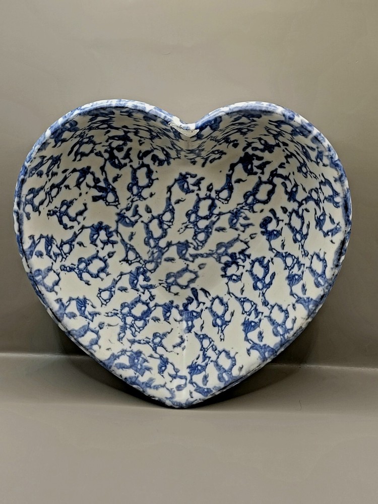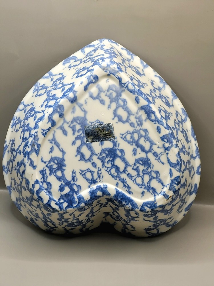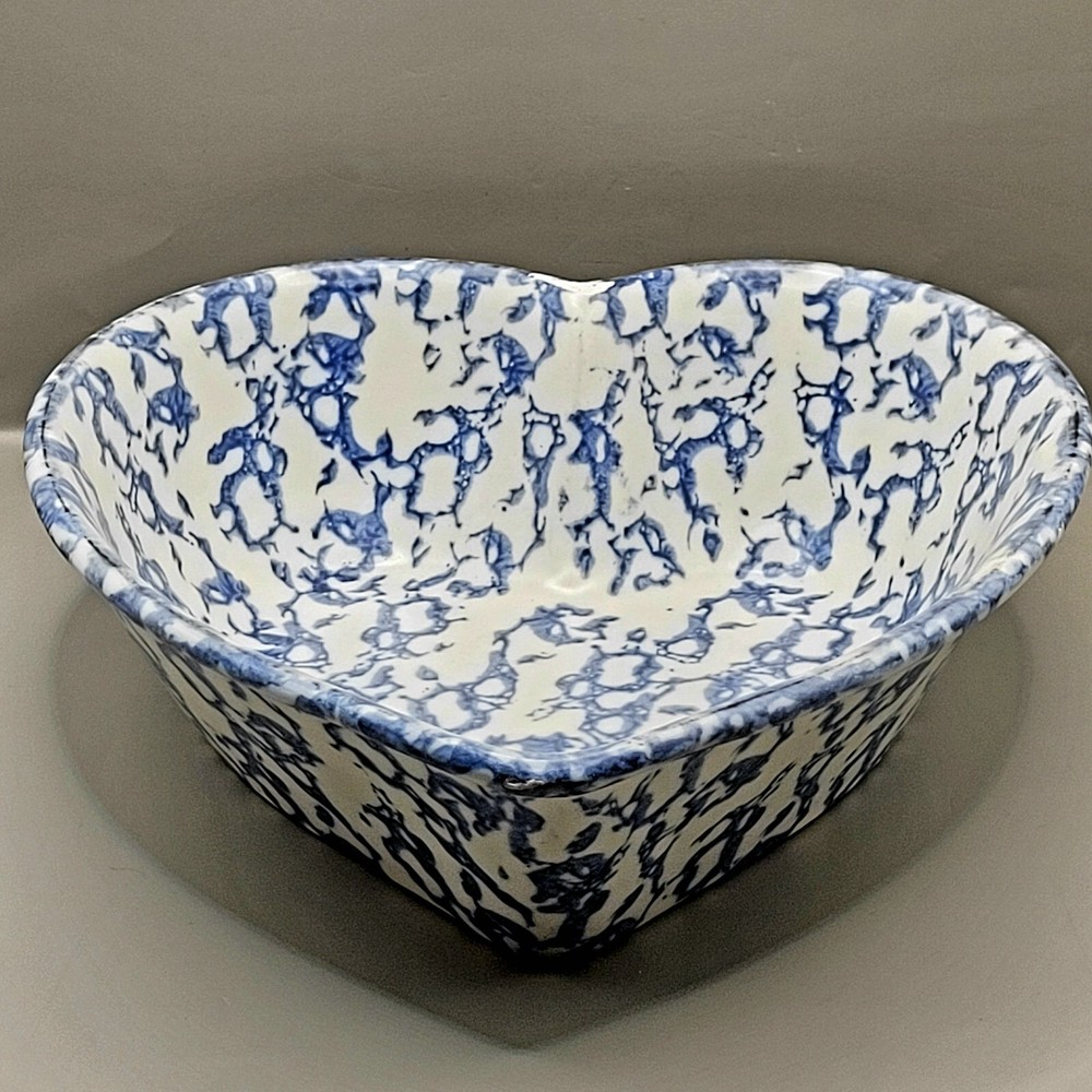 Has a chip. See photos. Add a touch of vintage charm to your kitchen with this beautiful handmade earthenware baking dish. The heart-shaped design, measuring 9 inches in width, is perfect for all occasions and will make a lovely addition to your decorative cookware. Crafted by Studio in the late 20th century using the pottery production technique, this original piece features a unique heart theme and is made of high-quality ceramic material. Whether you're baking your favourite dishes or displaying it as a decorative piece, this vintage spongeware bowl is sure to impress.