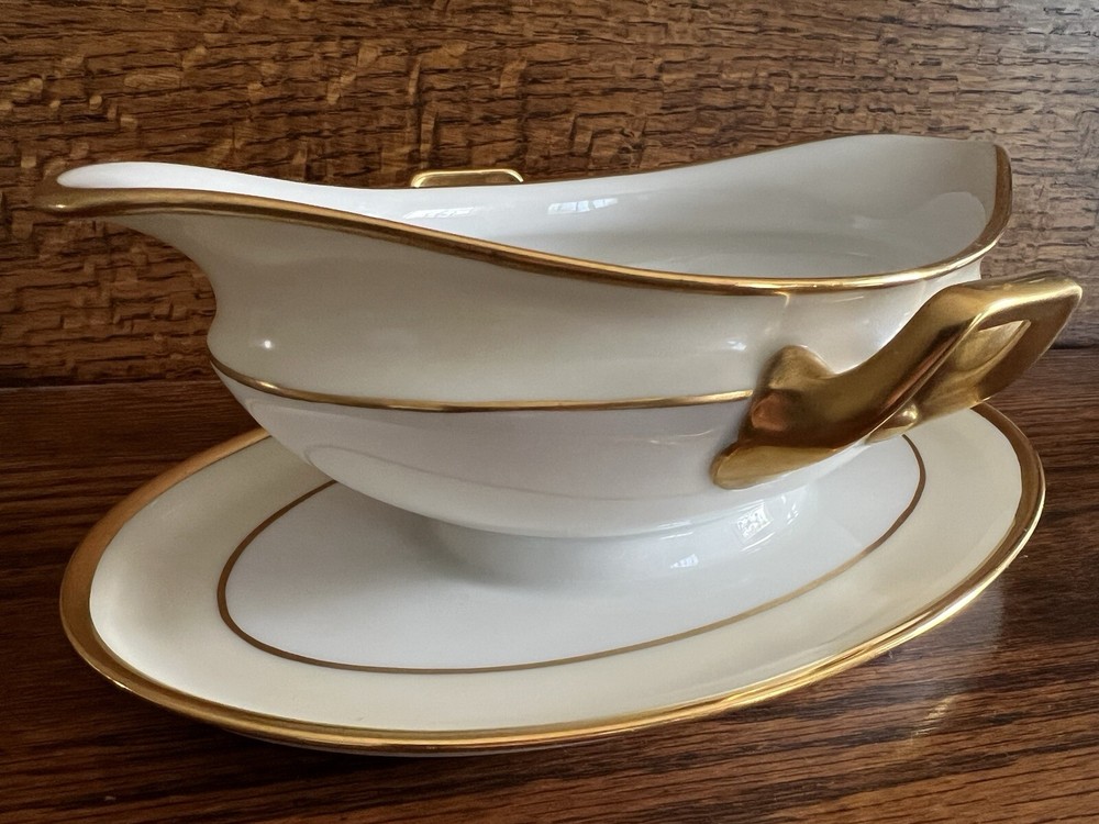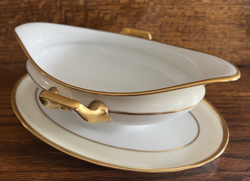 Vintage Steiner Studios Rosenthal Bavarian Ivory & White Gravy Boat Gold Gilding Absolutely stunning in “like new” condition.