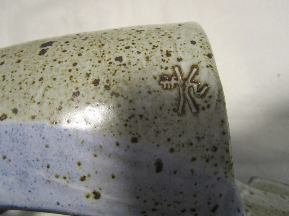 Description: 8/17/11/10 Book # 1698 Vintage Signed Studio Glazed Art Pottery Bowl Pot Lidded Fish shaped. Signed, I cannot read it- see last picture. Unique One of a Kind Versatile Multipurpose Nautical Coastal Lodge Cabin Beach House décor. Spectacular Coloration Inside and Out. Probably made in the 1980’s. Vintage by definition, is any item between 20 and 100 years old. Antique is any item 100 years old or more. It is 13” wide x 5.25” tall with lid on x 6” deep. It holds 1.50 quarts or 48 Oz. brim full. Unboxed it is 4 lbs. Excellent Vintage Condition- No Chips or cracks. Signed by the maker- see last picture. Zoom and view all pictures as they are part of the description. I DO MY BEST TO DESCRIBE EVERY LISTING BUT I AM NOT AN EXPERT AND ITEMS ARE SOLD “AS IS”. My idea of great/good may be different than yours, so EXAMINE PHOTOS CAREFULLY since they are binding and a supplement to the word description in case, I should miss something. If I fail to mention something, it does not qualify as “item not as described” if it shows in my pictures. EACH PHOTO IS WORTH A THOUSAND WORDS AND THEY ARE OF THE EXACT ITEM YOU WILL RECEIVE. RETURN POLICY: Returns are acceptable ONLY if the item doesn’t match the description, is defective, or grossly misrepresented. THIS MEANS I DO NOT ACCEPT RETURNS for FIT, SIZING, COLOR ISSUES, OR BUYER'S REMORSE. Please zoom and view ALL pictures for more details as they are part of the description. Email me with any questions you may have. Please note: Buyer pays ALL return shipping and fees. Postage fully tracked. FEEDBACK: I do not leave feedback until the end of a transaction. Transaction is considered over once I receive feedback from you confirming that you have received it and expressed satisfaction with it. If you are unsatisfied with your purchase, please contact me before leaving a neutral or negative feedback- so I can fix the issues.