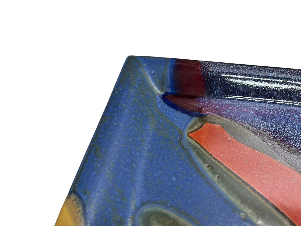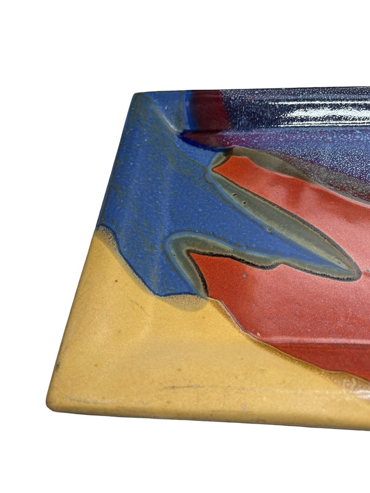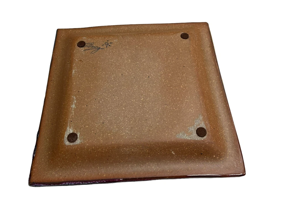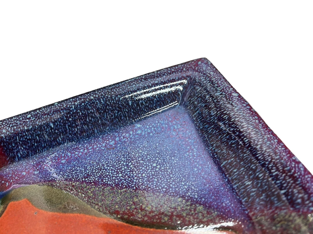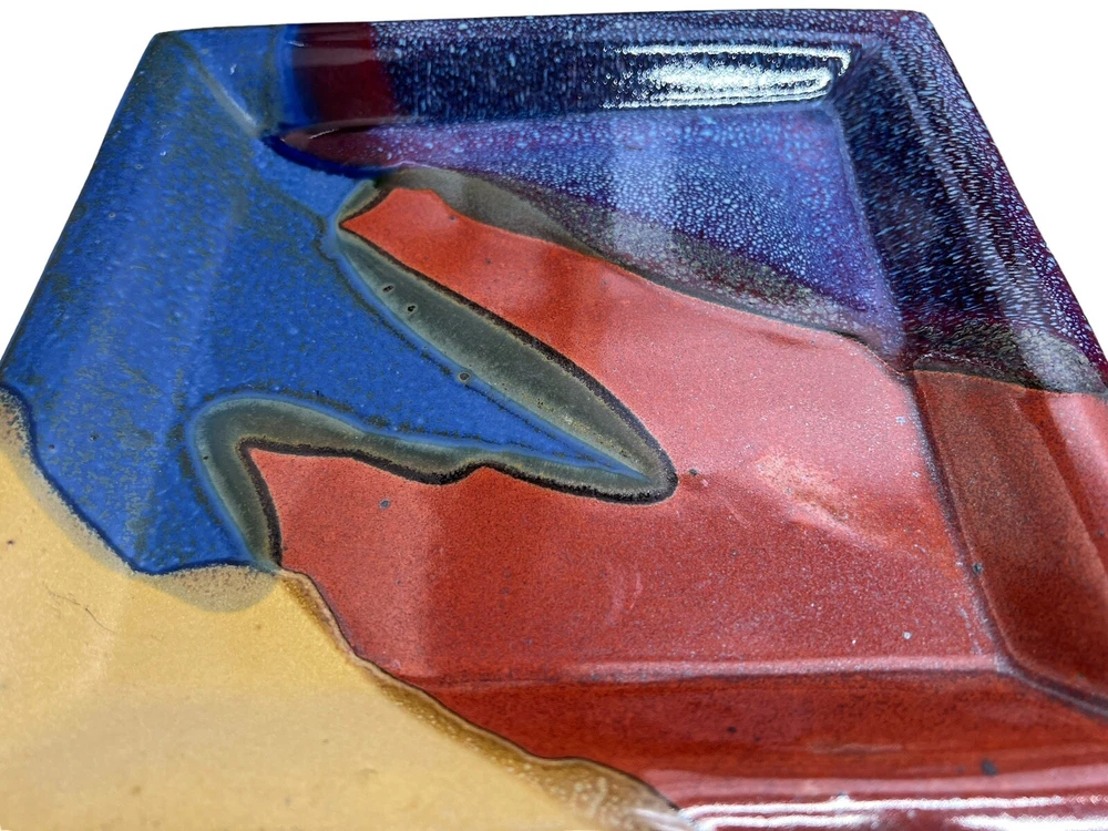 Vintage Studio Art Pottery Multicolor Square Platter Plate 10.5" Signed No chips/cracks has some surface scuffing Signed on the bottom Felt feet