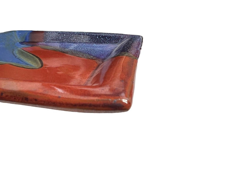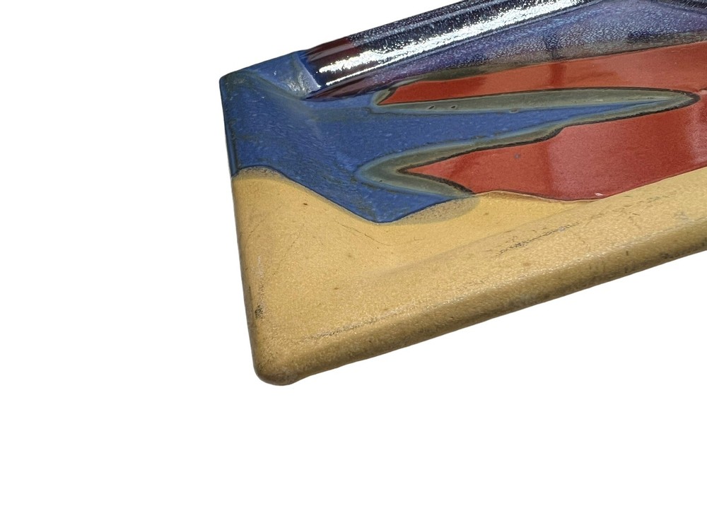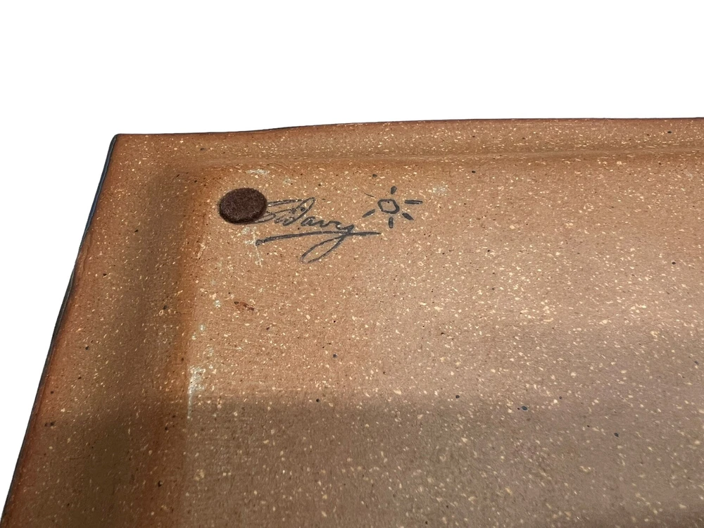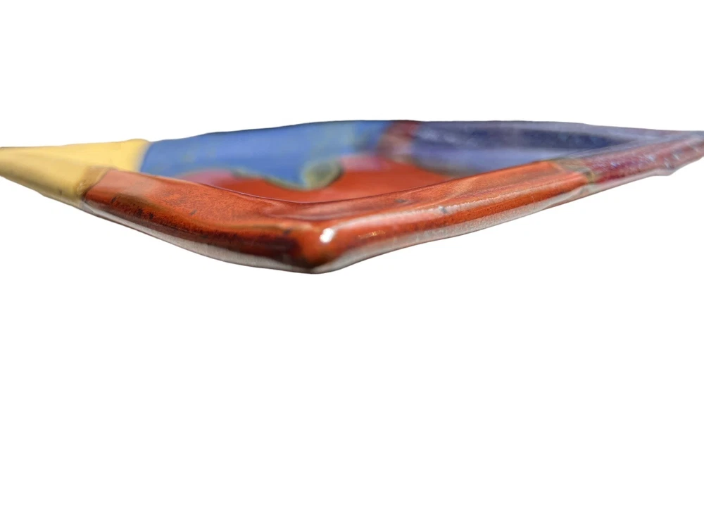 This stunning vintage platter is a true work of art! The bold multicolor design adds a vibrant pop to any table setting, while the square shape gives it a modern edge. The craftsmanship is excellent—no chips or cracks, just minor surface scuffs that add character. Love the artist’s signature on the bottom and the felt feet protect surfaces. A unique, eye-catching piece perfect for display or serving in style!
