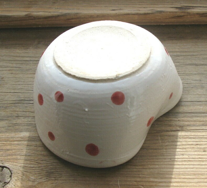 Vintage Pottery Heart shaped bowl with red polka dots.