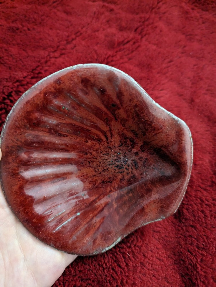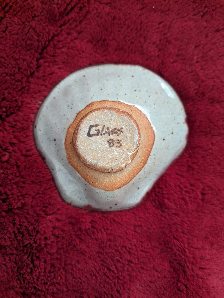 Very nice studio art pottery small trinket dish. It's a beautiful oxblood color glaze, appears to be speckled. It was signed by the maker, Glass 1983. Please see pictures and let me know if you have any questions. Thanks!