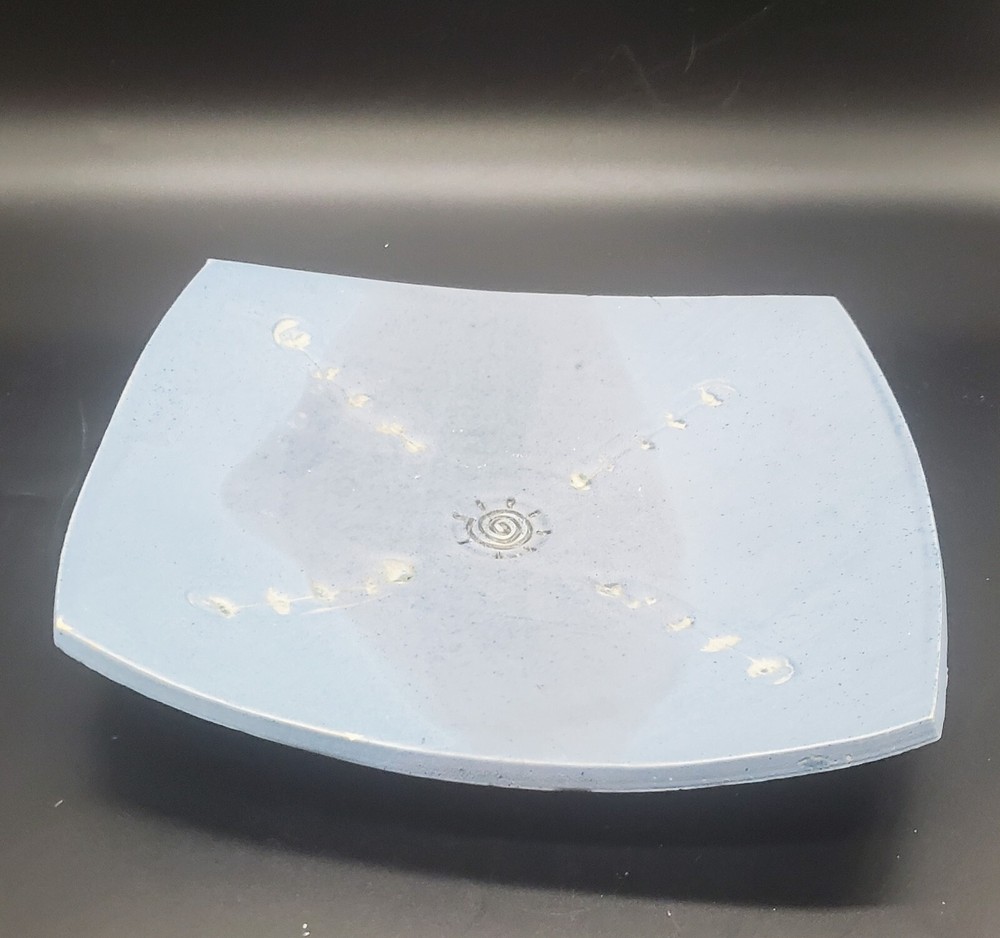 Vintage Studio Art Pottery Square Decorative Bowl 9.25" Blue Signed. Very good condition no chips or cracks