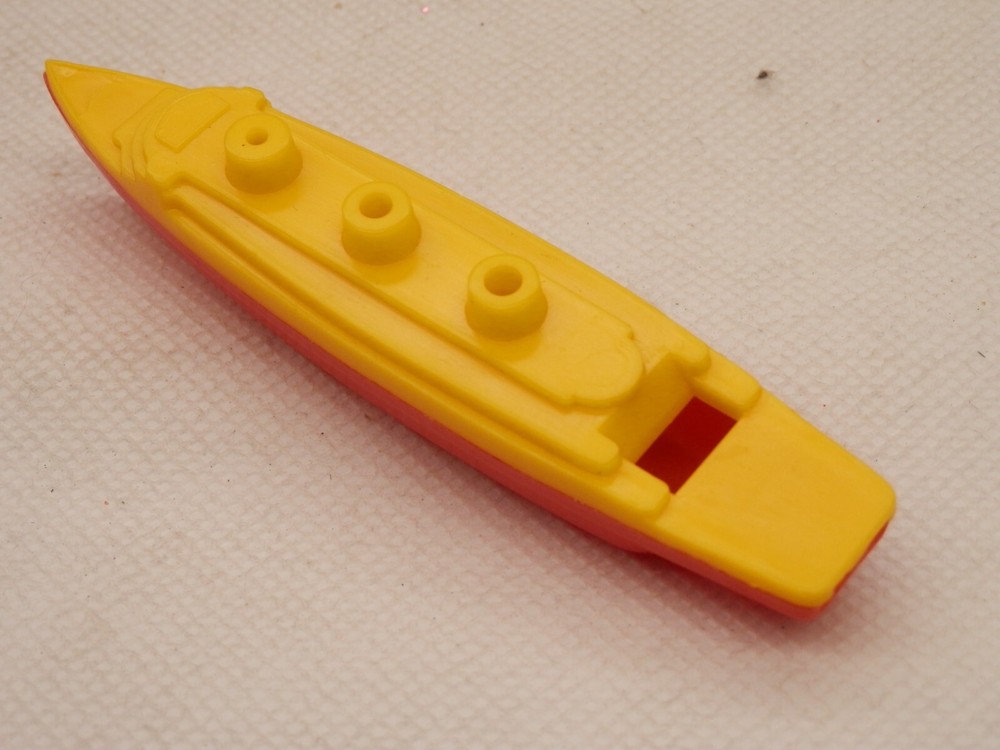 Cool vintage toy whistle. Lightweight plastic Has light wear. Works Good. About 4" long, 7/8" tall and 7/8" wide. Ships in a sturdy box...