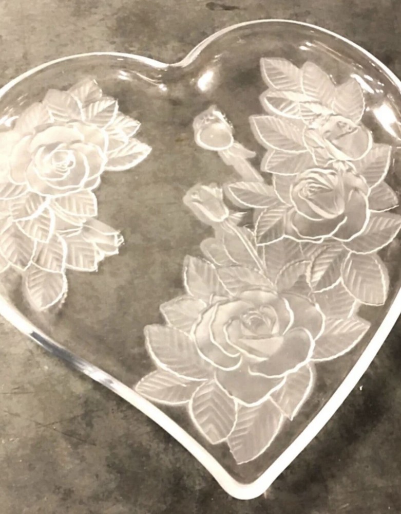 Brand new condition. Tray measures 11” in length. Features delicately carved rose details. Crafted in Japan....
