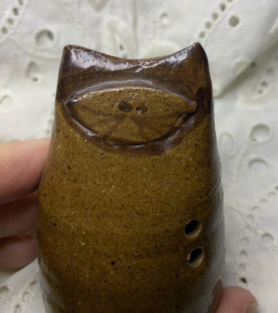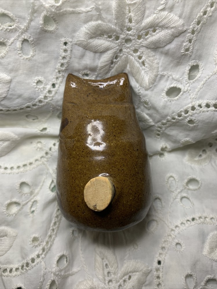 Vintage Studio Pottery Brown Cat Salt Pepper Shaker Handmade. In nice used condition. There is a small crack on the bottom, but I am not sure if it effects the functionality. Please see photos for reference. Measures 3” x 2.25” x 2”