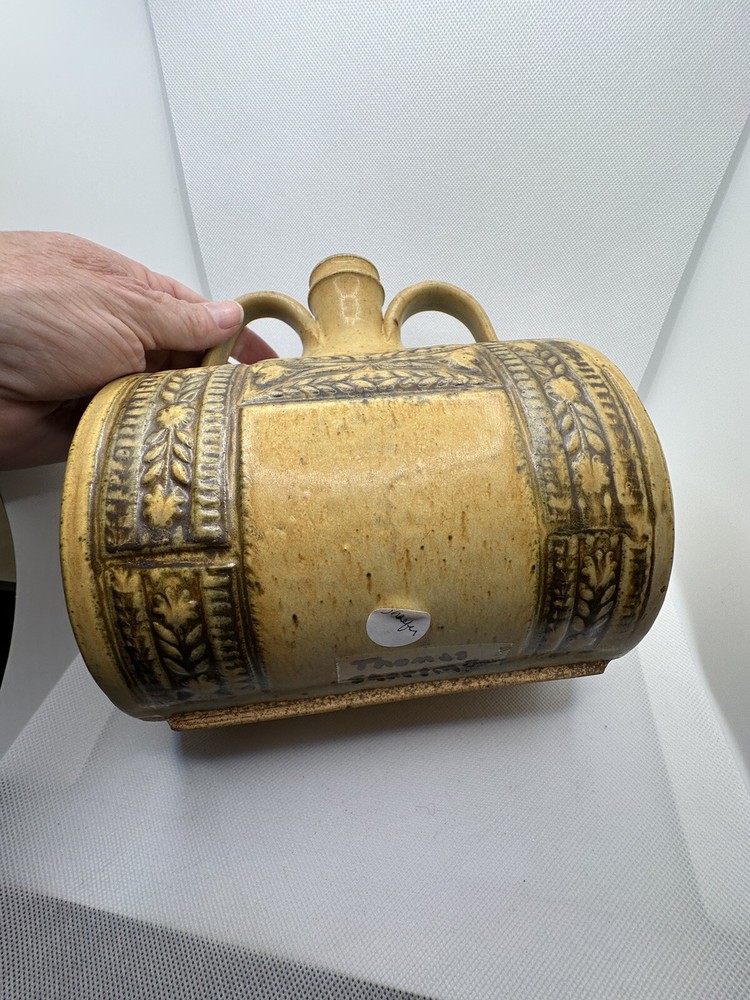This vintage Thomas Shafer round shaped stoneware studio art vase is a beautiful piece that will surely enhance any art collection. With its medium size of 9 inches in height and 6 inches in width, this vase is perfect for displaying your favorite flowers or simply as a decorative piece. The vase is made of high-quality stoneware material, ensuring its durability and longevity. This original piece has a unique roud shape that is sure to catch the eye of any art enthusiast. It is perfect for those who appreciate the beauty of vintage art and are looking for a statement piece. Whether you're a collector or simply looking for a beautiful vase, this Thomas Shafer piece is sure to impress.