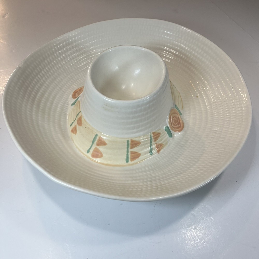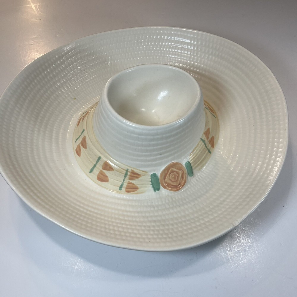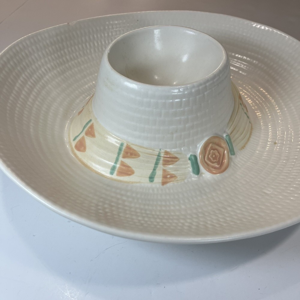 Vintage Treasure Craft Sombrero Chip and Dip Large Serving Bowl Dish USA Aztec Very small chip. Please see picture.