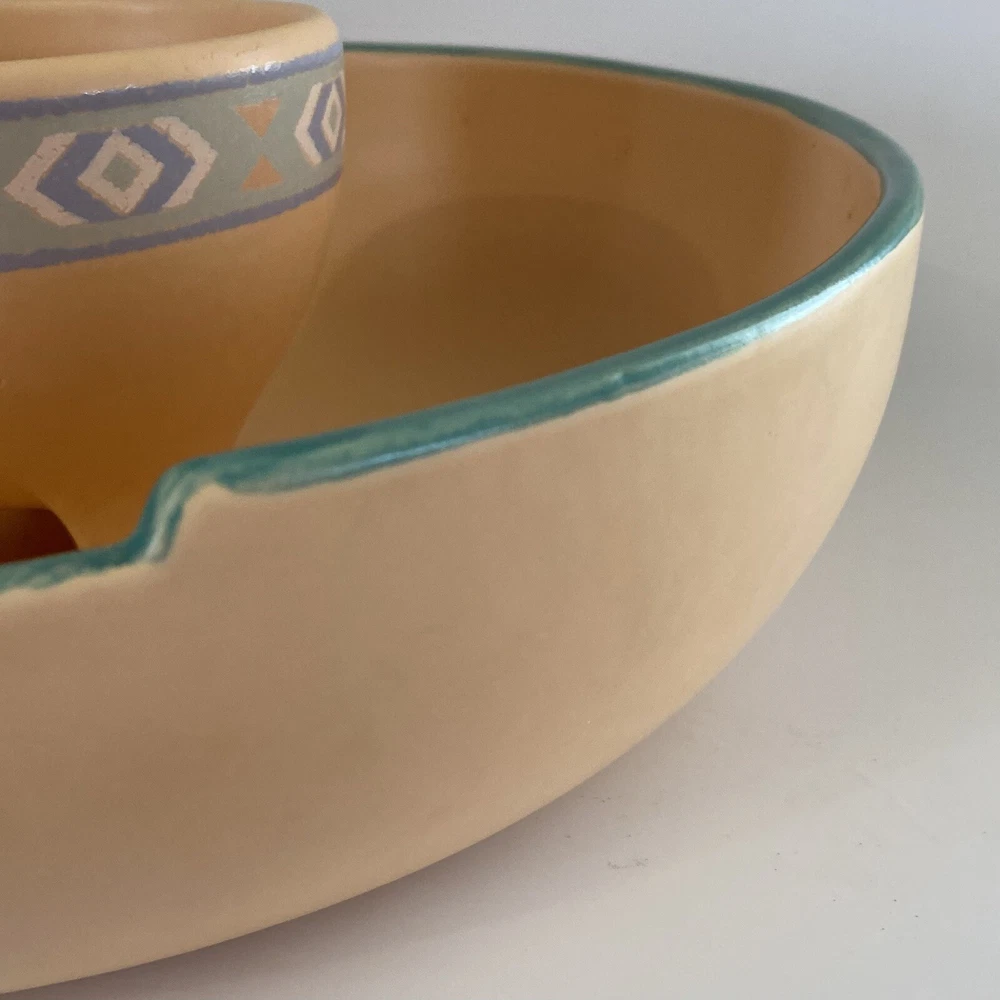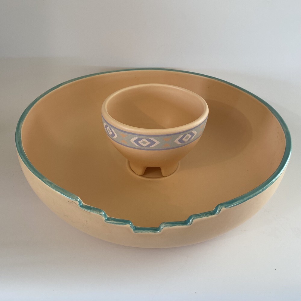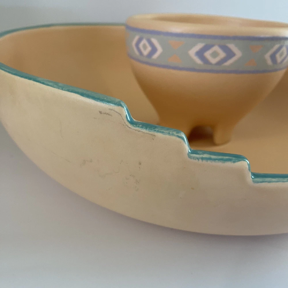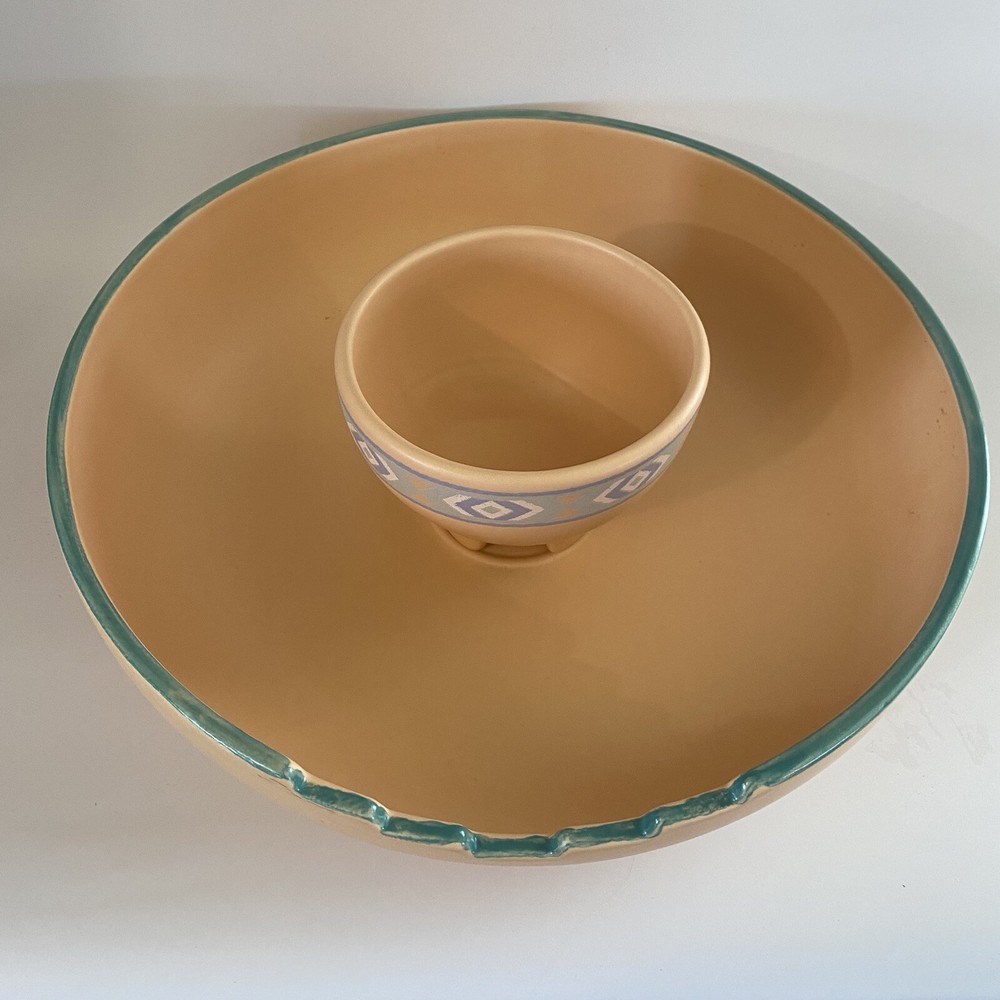 Vintage Treasure Craft USA Large Southwestern 2 Piece Chip And Dip Set. There are no chips or cracks. There is minor signs of wear. See all photos....