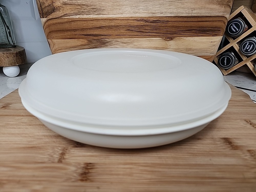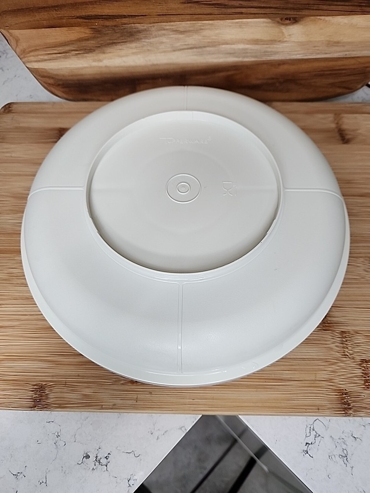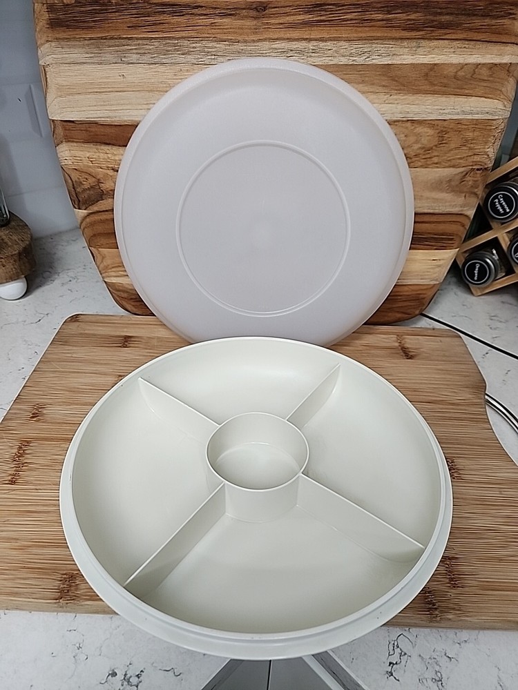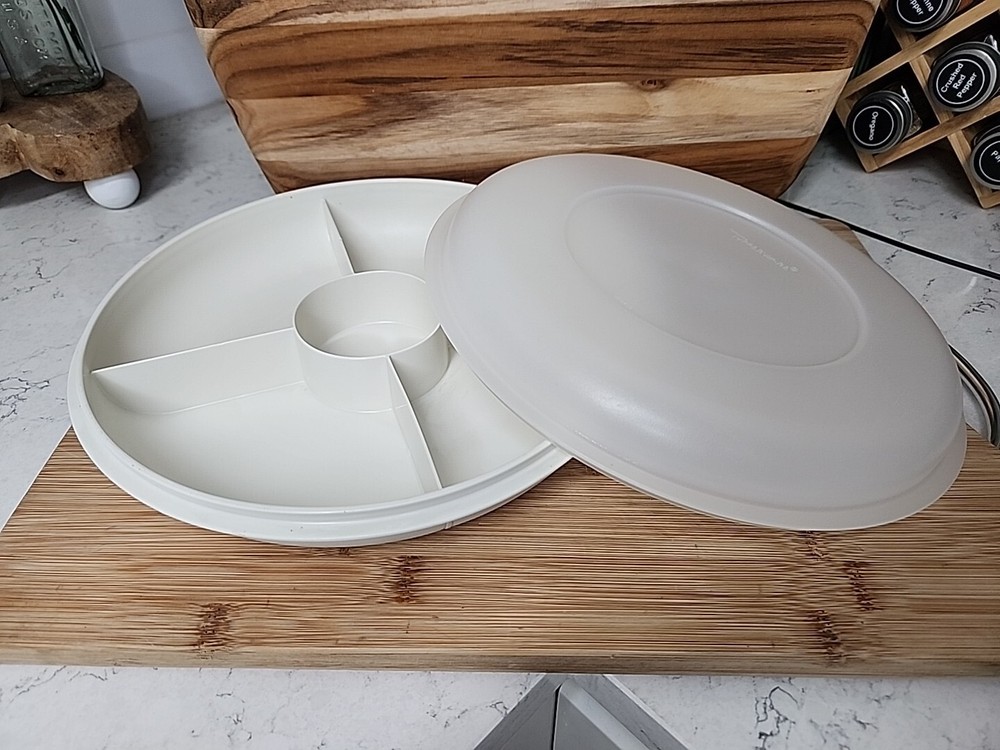 Tupperware 1708 Divided Veggie Dish Vegetable Tray Beige with clear Lid 1709 in great condition. See photos! 5 compartments Air tight lid Fast shipping!...
