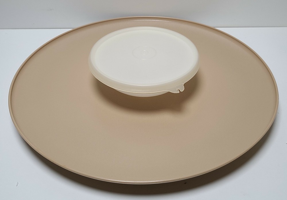 Vintage Tupperware Almond Chip and Dip N Serve Circular Tray Platter 492. Excellent condition Approx. Tray 14" Diameter Bowl 5.5" Diameter 2" Deep...