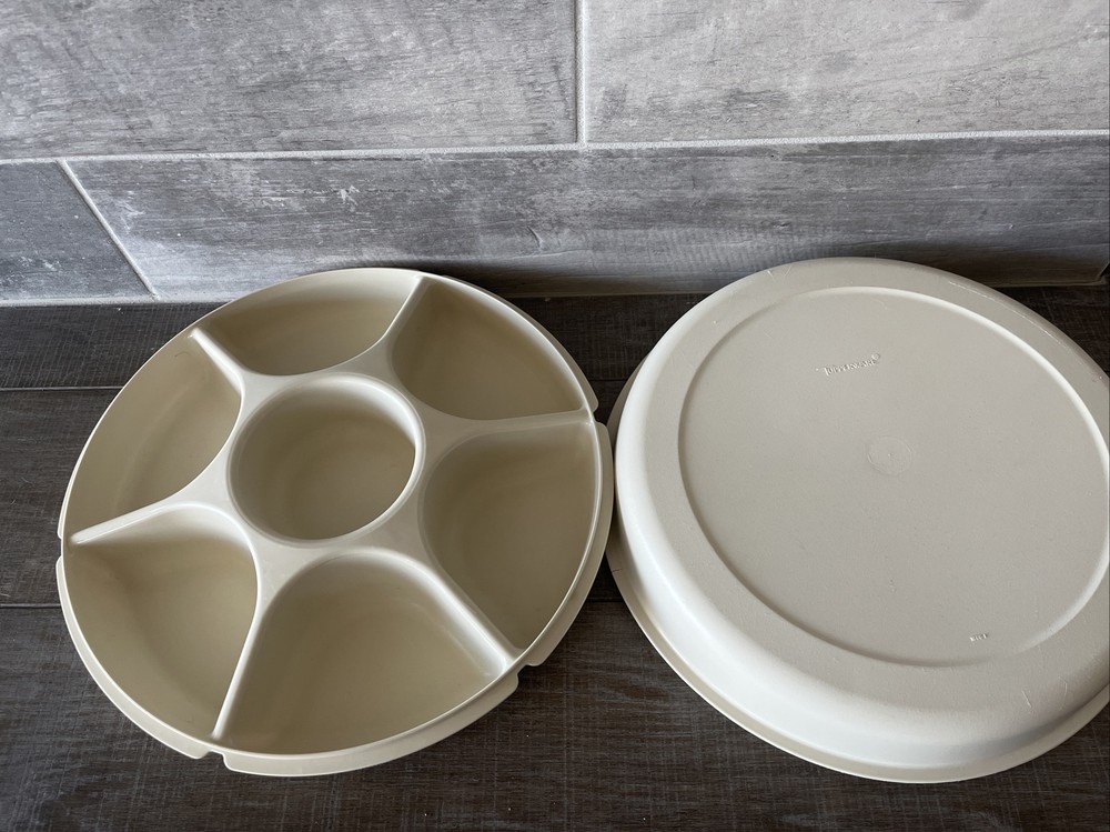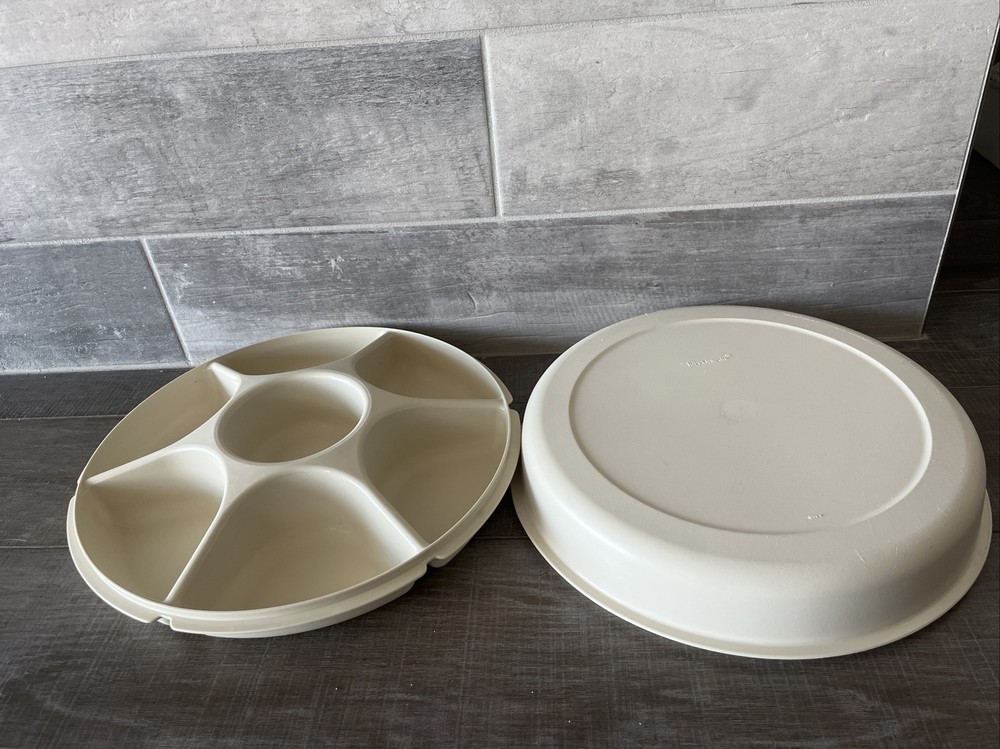 Vintage Tupperware Almond Divided Vegetable Fruit Chip & Dip SERVING TRAY & LID...