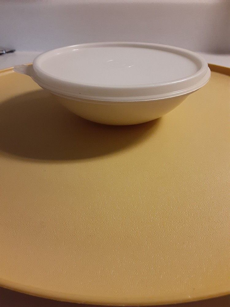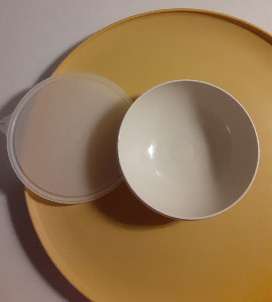 Vintage Tupperware Chip Dip-N-Serve Tray & Bowl # 492 harvest gold. No cracks chips or stains. Clean and lid seals well....