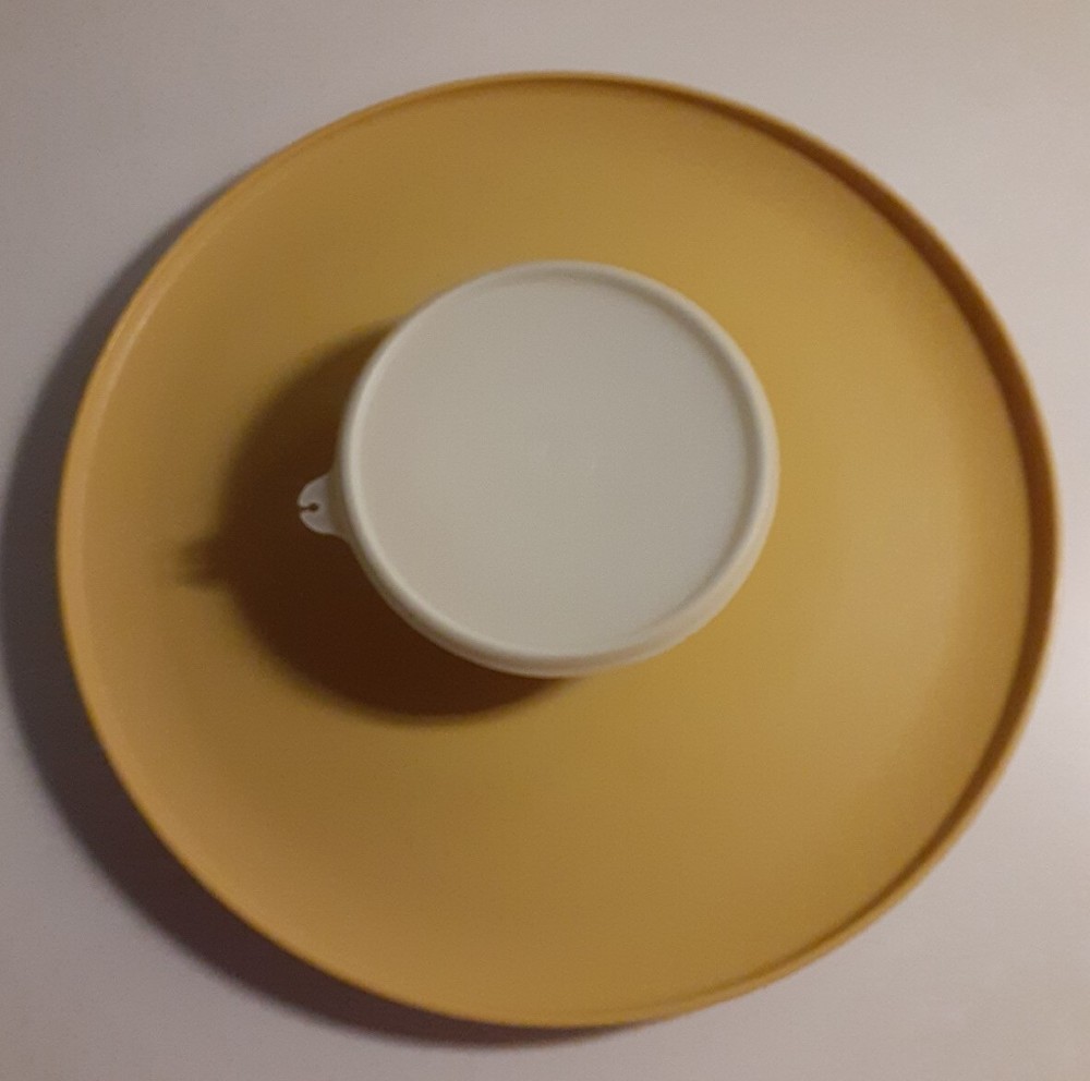 Vintage Tupperware Chip Dip-N-Serve Tray & Bowl # 492 harvest gold. No cracks chips or stains. Clean and lid seals well.