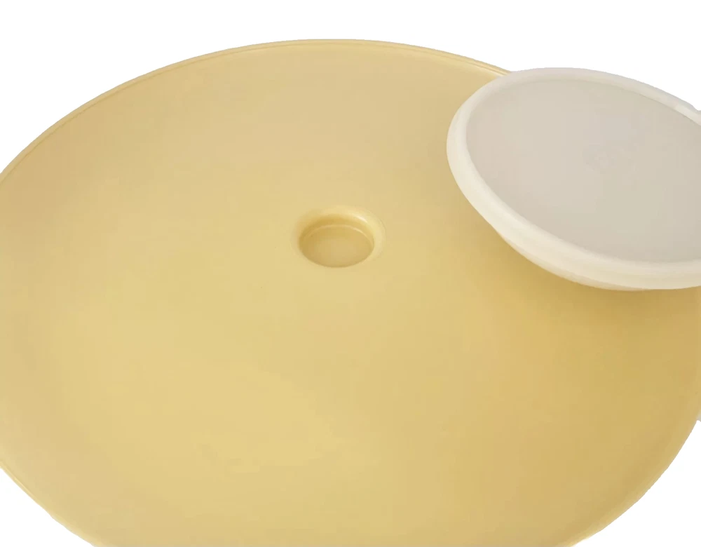 This vintage Tupperware set is a fantastic find! The tray is in great condition—no scratches or cracks—and the bowl's lid still snaps tight. Perfect for serving dips, snacks, or even desserts. Easy to clean and store, plus it’s super versatile. Love the retro harvest gold color!