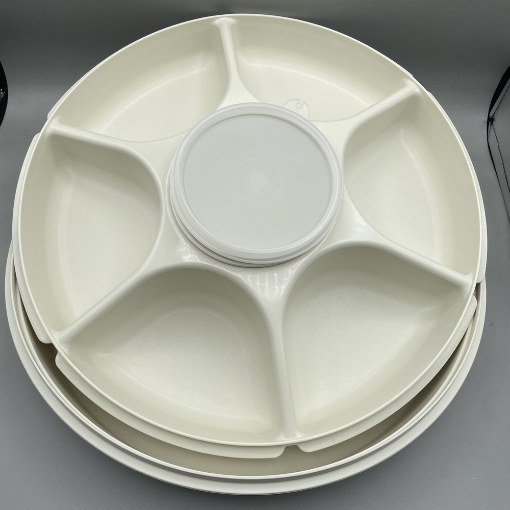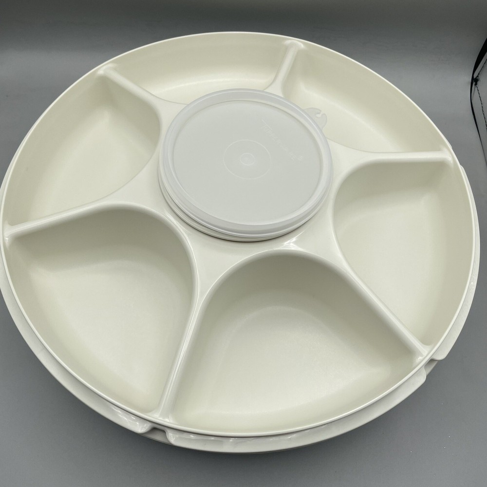 Vintage Tupperware Dip Tray 6 Slots Divided Veggie Bowl SET #1665 1666 1667 See photos for approximately measurements and condition