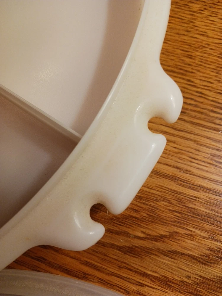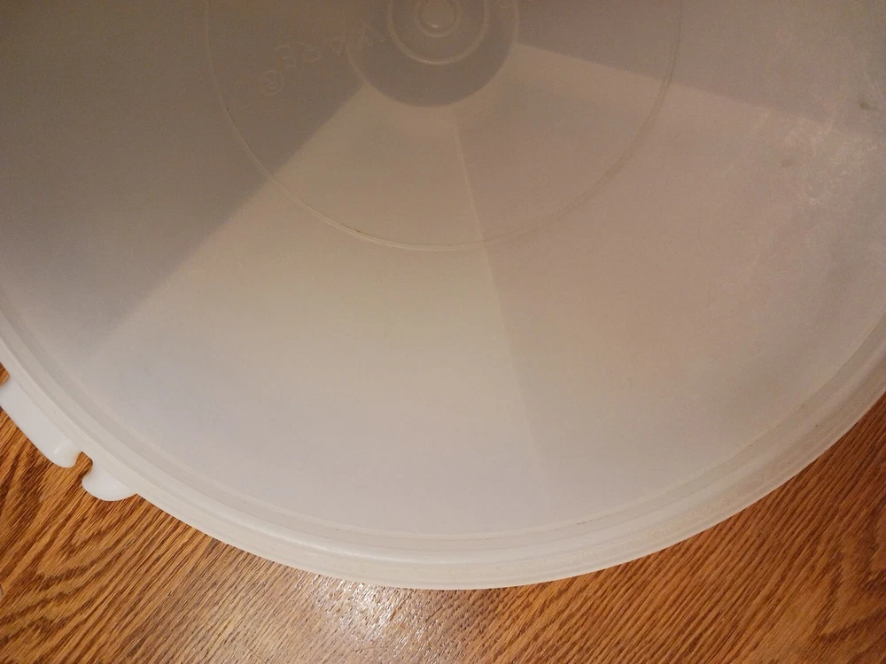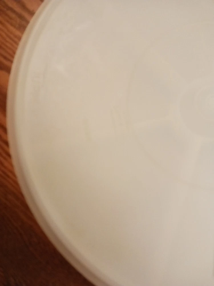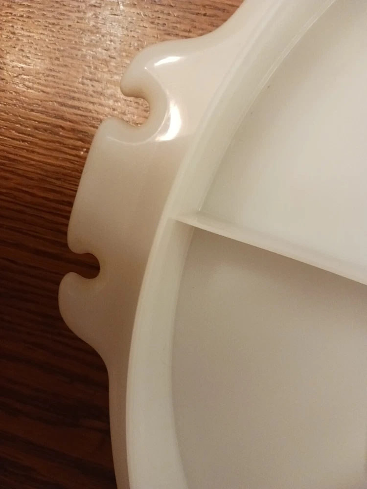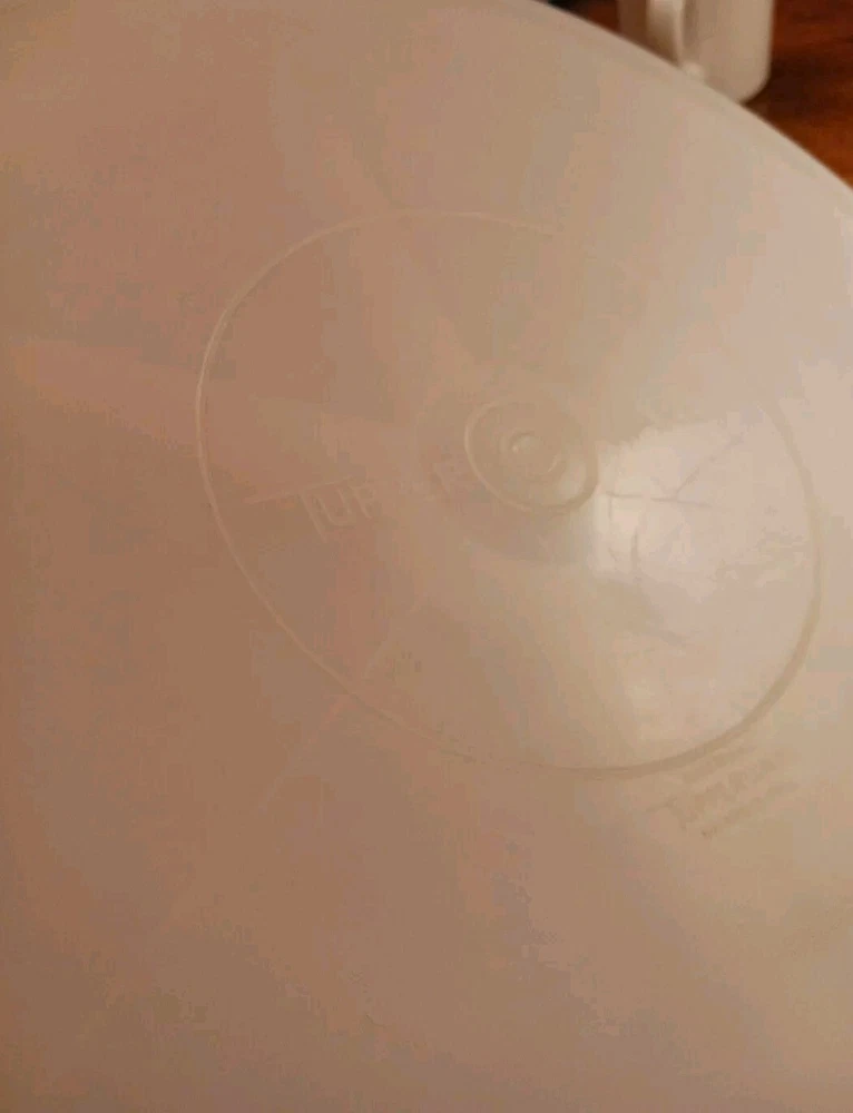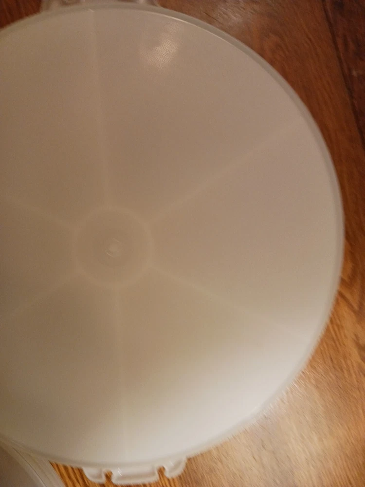 This is a Vintage Tupperware Divided Dish Condiment Dip Tray #224-9. Abit over 12" w/ Tupper Seal Lid. Estimating that this is from the early 1970s. Please note that the top and the bottom are white. The wood table might have cast a tan color but dish is white! I am aware that this was hardly if ever used, but because of storage and age, there are a few minor scuffs on lid, a few on bottom. Upon inspecting the inside of the tray, I see virtually no signs of use. Please see photos, I've tried to be as clear as possible ....and also see item details. Feel free to contact me with further questions. Thank you for looking!.