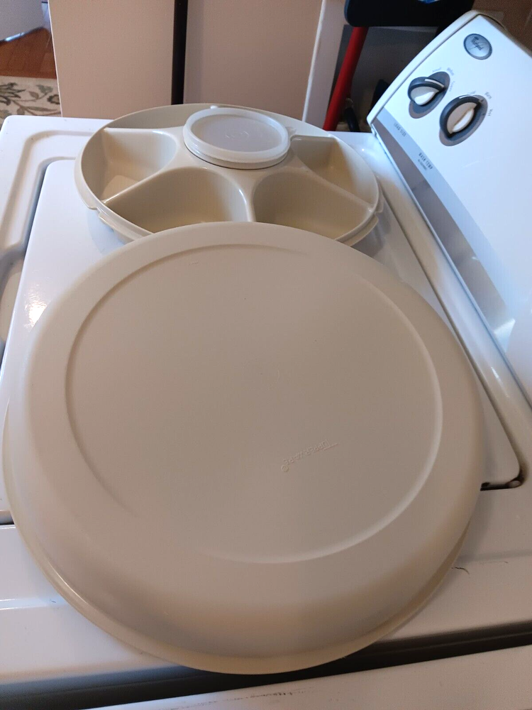 Vintage Tupperware Divided Vegetable Relish Chip & Dip Bowl Lids 1665-2 This item looks like it is brand new! It is a wonderful container to have to take to a picnic, party or potluck!...