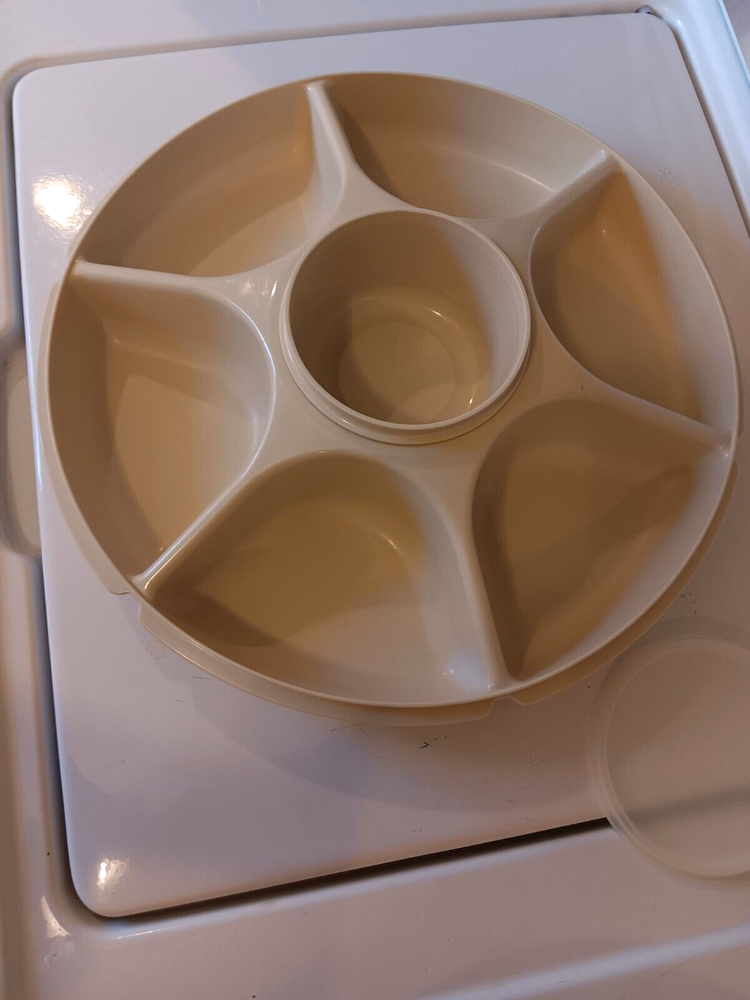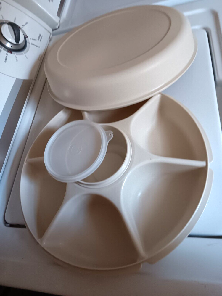 Vintage Tupperware Divided Vegetable Relish Chip & Dip Bowl Lids 1665-2 This item looks like it is brand new! It is a wonderful container to have to take to a picnic, party or potluck!