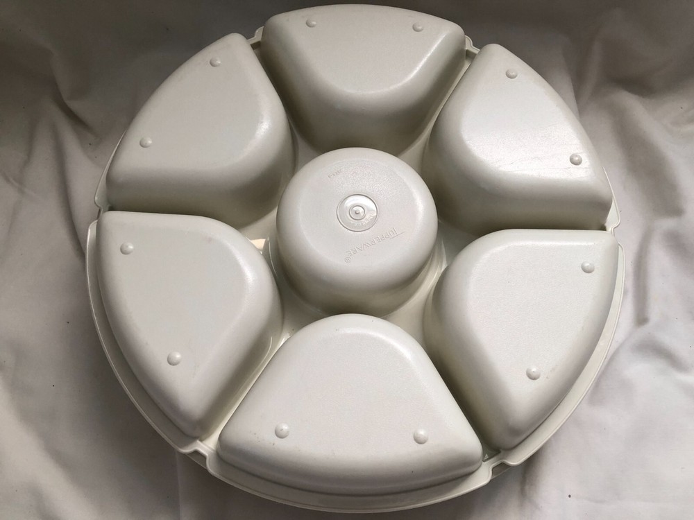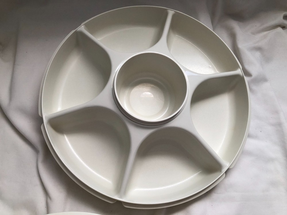 Vintage Tupperware Divided Veggie Chip Fruit Serving Party Tray W/Dip Bowl 1666-1 & 1665-3. In excellent, pre-owned condition, nice and clean. Comes from a smoke/pet free home. FAST SHIPPING!!!