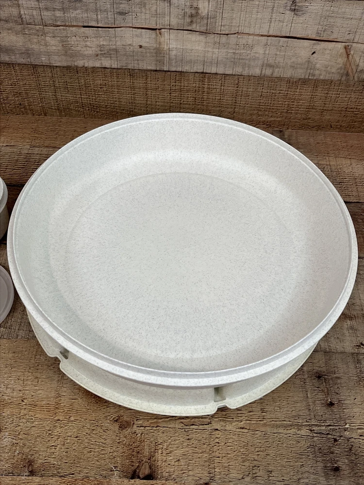 This vintage Tupperware veggie tray is a fantastic find! The divided sections keep snacks organized, and the almond color gives it a charming retro vibe. The dip bowl seals well even with the replacement lid—perfect for parties or family gatherings. Sturdy, practical, and full of nostalgia!