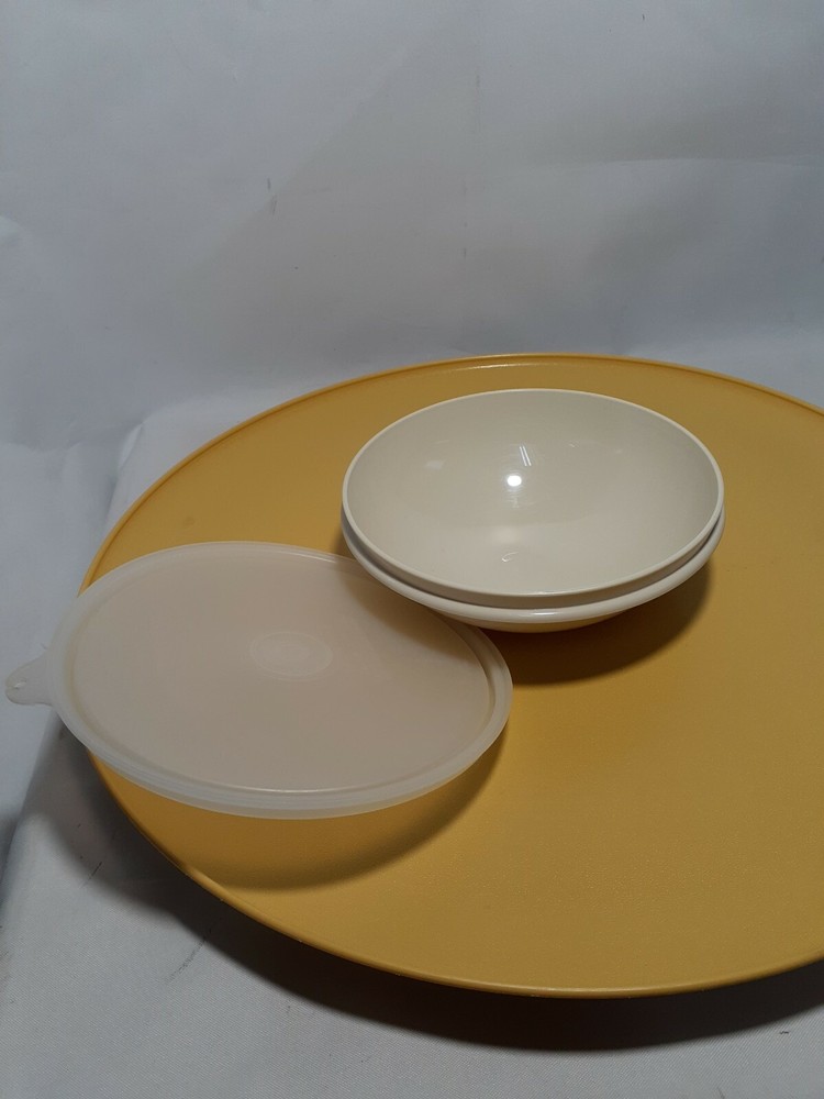 Tupperware large serving tray and dip bowl and Lid Tray is yellowish gold color Bowl is white and lid is sheer Used. Will Show signs of use. Please see pictures View more great items Check out my similar items for sale! Add Several to your cart for combined shipping!! See similar items! Add Several to your cart for combined shipping!!