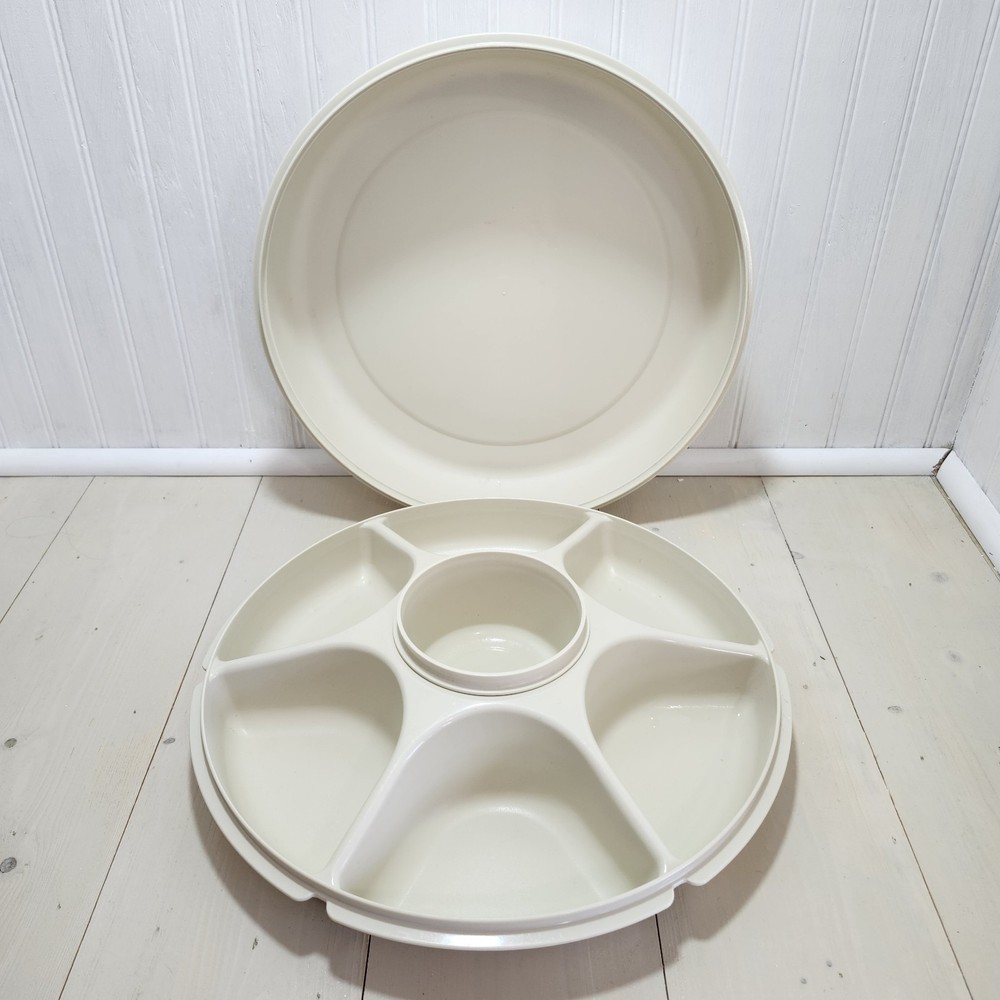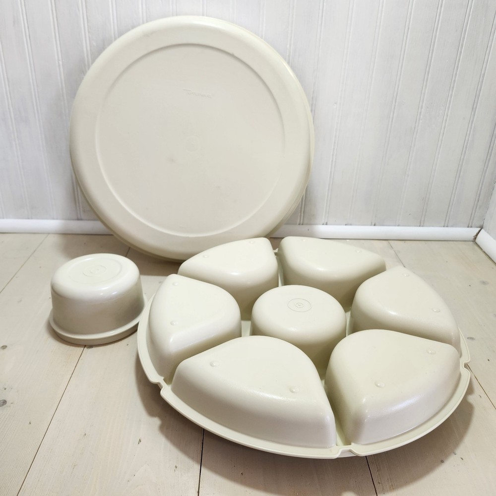 Vintage Tupperware Divided Serving Dip Tray 1665-5 with Lid 1666-3 and Dip Bowl 1667-2 13.5" Wide x 4" Tall Very Good Vintage Condition Minor Signs of Normal Use Dip Bowl has no lid. See photos for details. PLEASE visit my store to see ALL of my GREAT Deals! ☆☆☆NEW ITEMS ADDED DAILY ☆☆☆ Pet & Smoke Free Environment Super Fast Shipping!!!