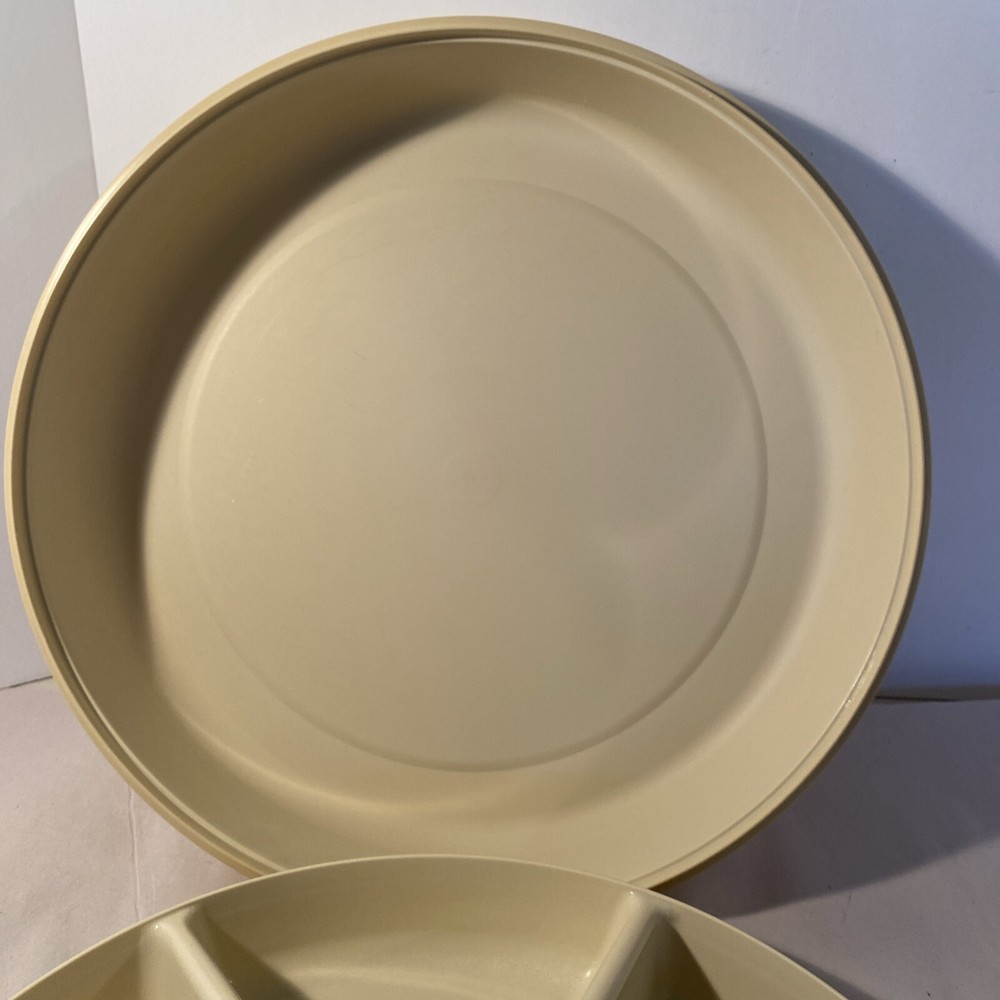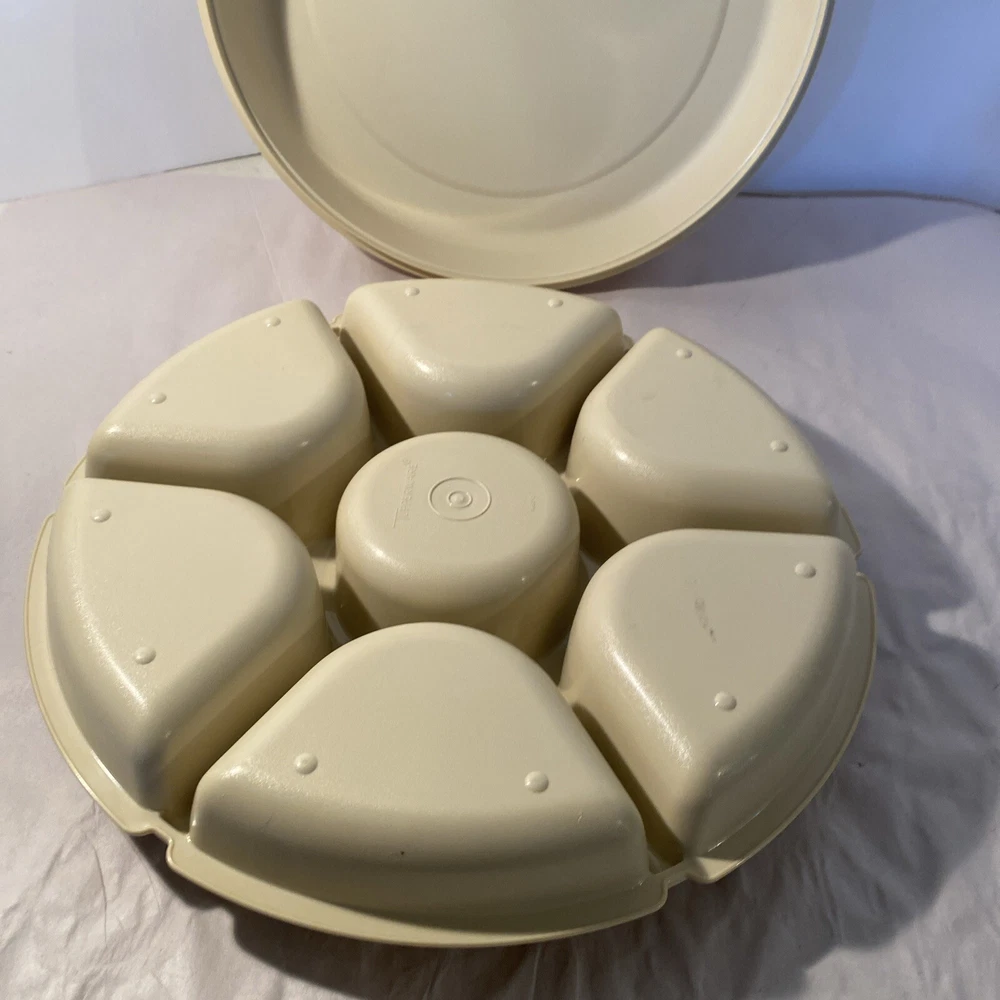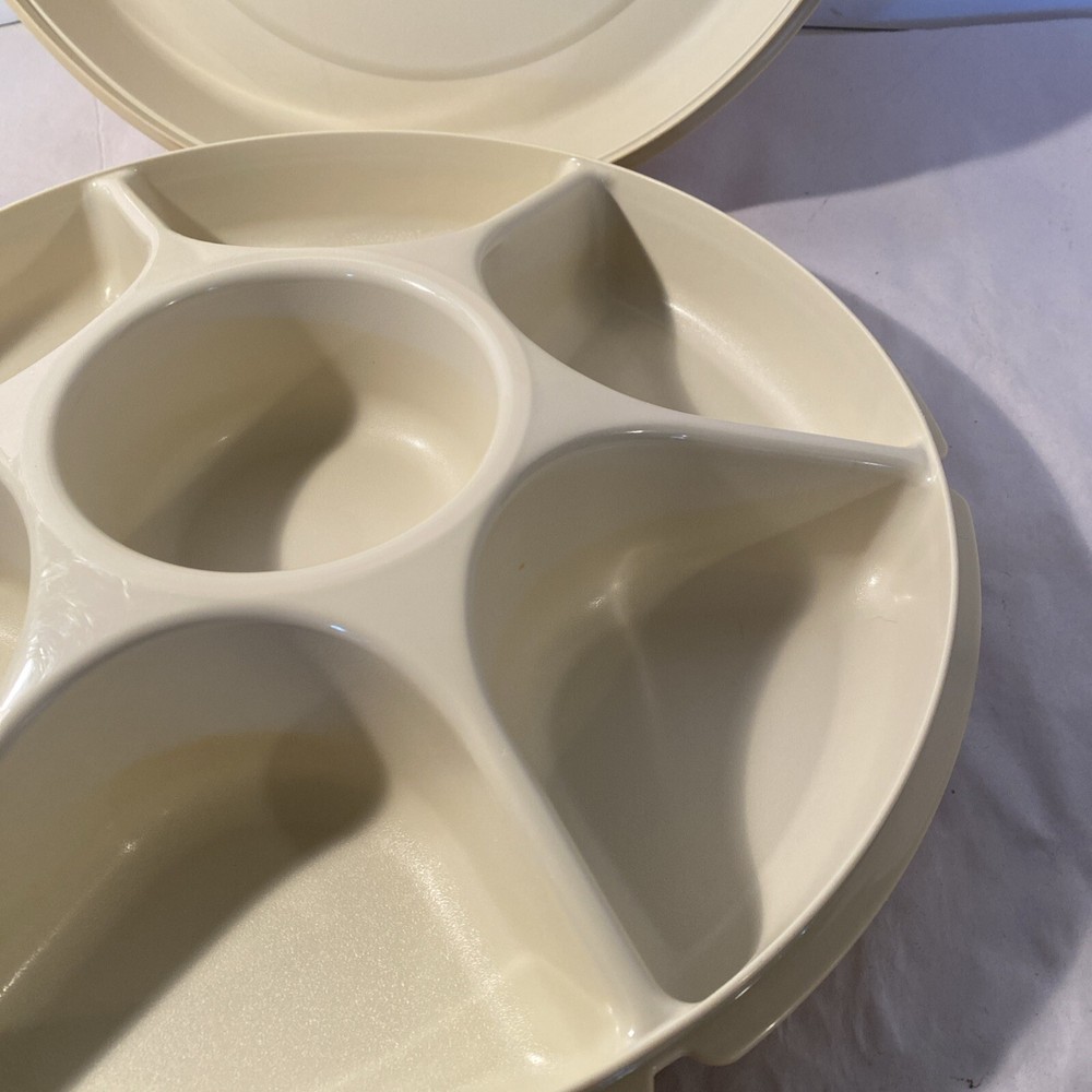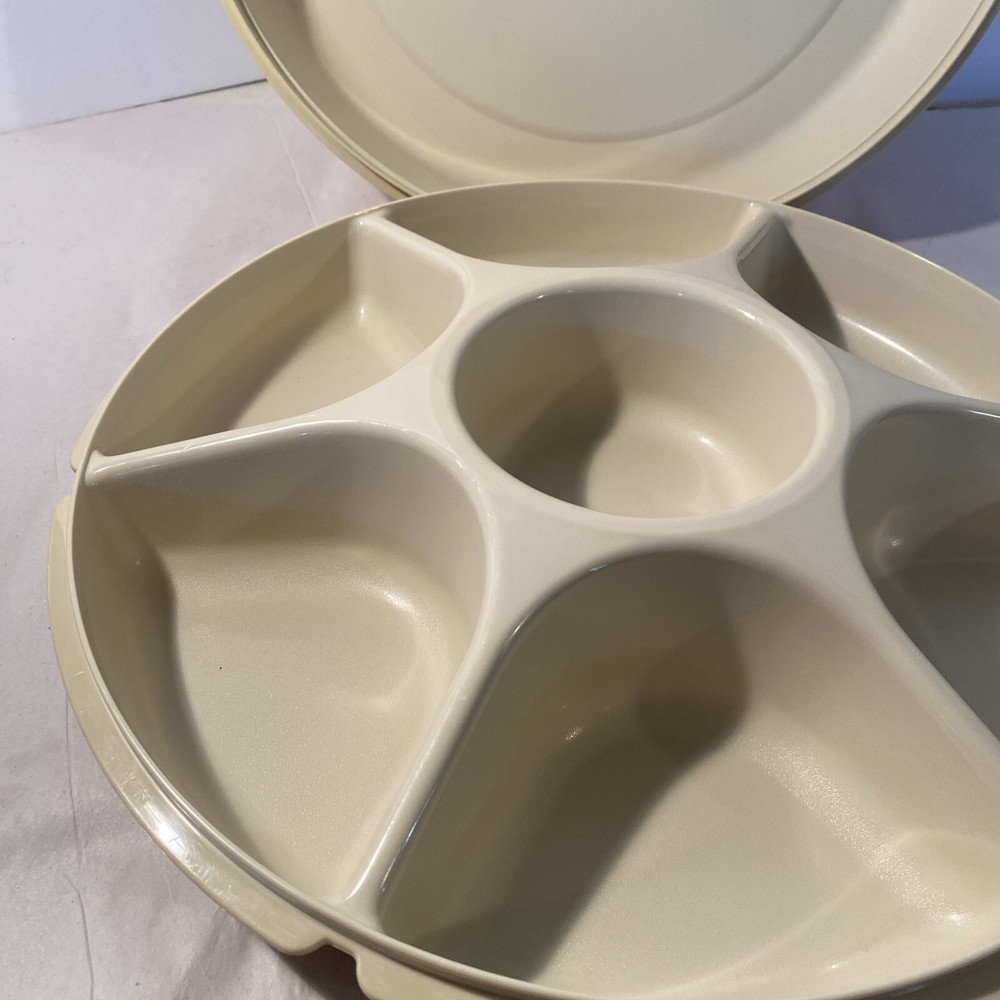 Vintage Tupperware Veggie Chip Dip Divided Serving Tray 1665-2 Lid 1666-2 Almond. Condition is Used. Shipped with USPS Ground Advantage....