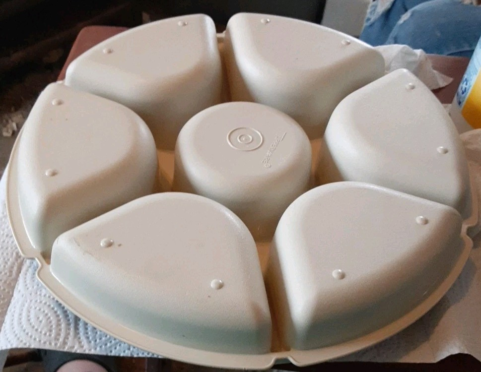 This retro serving tray is absolutely perfect for parties! The divided compartments keep everything organized while the generous size handles all my snacks. Love how durable and easy to clean it is - truly brings that classic Tupperware quality to every gathering.