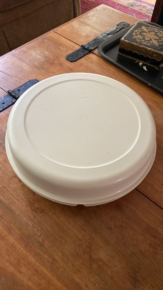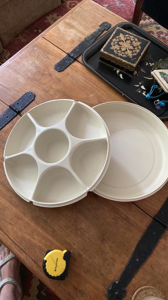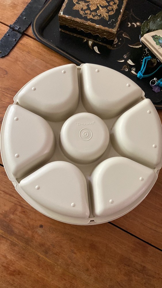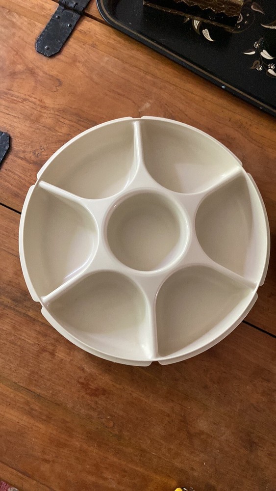Vintage Tupperware Veggie & Dip Tray With Lid. 6 veggie slots, 1 center dip slot, Beige color...