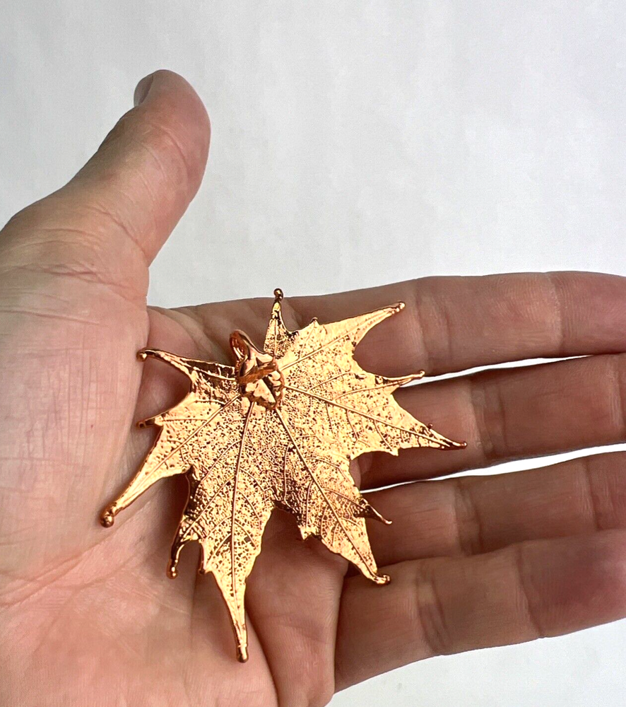 Vintage Unbranded Large Real Maple Leaf Dipped In Copper Pendant Ornament You get ONE (1) pendant, price break for multiple pendants purchased. These are real maple leaves that have been preserved and dipped in copper. Each are different and unique in size and shape. They average about 2" long by 2.5" wide. Yours may vary from these measurements. Place it on a chain to wear as a necklace, make a pair of earrings or turn it into an ornament for your tree or car rear view mirror. Get creative!
