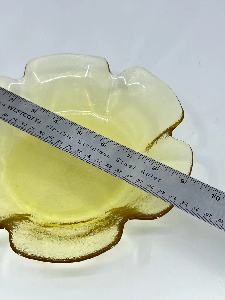 This gorgeous vintage lotus bowl adds a pop of sunny yellow charm to any space! The elegant flower design and quality glass craftsmanship make it perfect for displaying candies or simply as a statement decor piece. Its sturdy yet delicate look captures that classic 70s vibe while feeling fresh and stylish. Love how it catches the light—such a cheerful accent for tabletops or shelves!