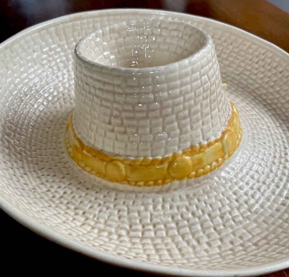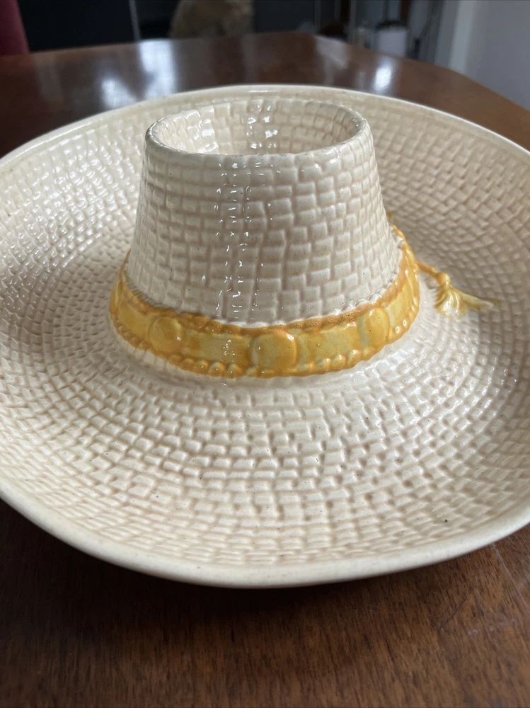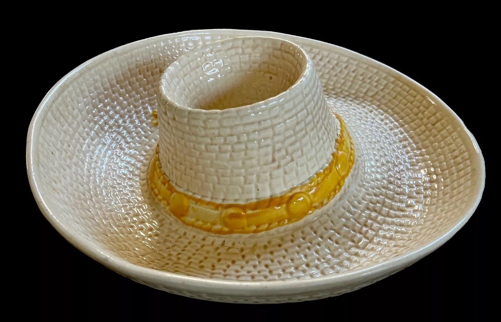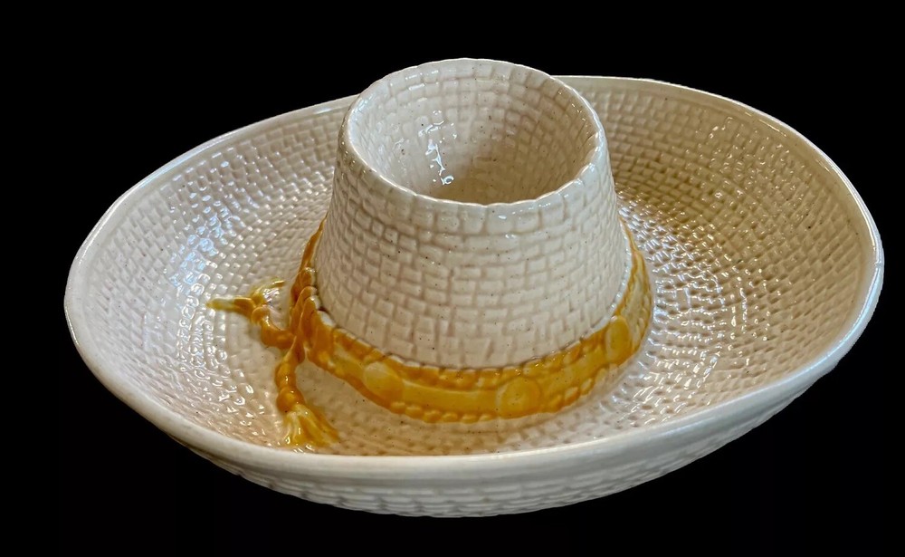 Vintage Whittier Pottery Sombrero Straw Hat Ceramic Chip And Dip Bowl USA WPO 86 Excellent vintage condition with no issues Please see pictures for more information...