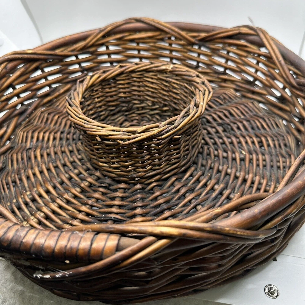 <![CDATA[<div>Vintage dark color wicker chip & dip basket. Round. About 13" across & 3.5" high Nice condition....