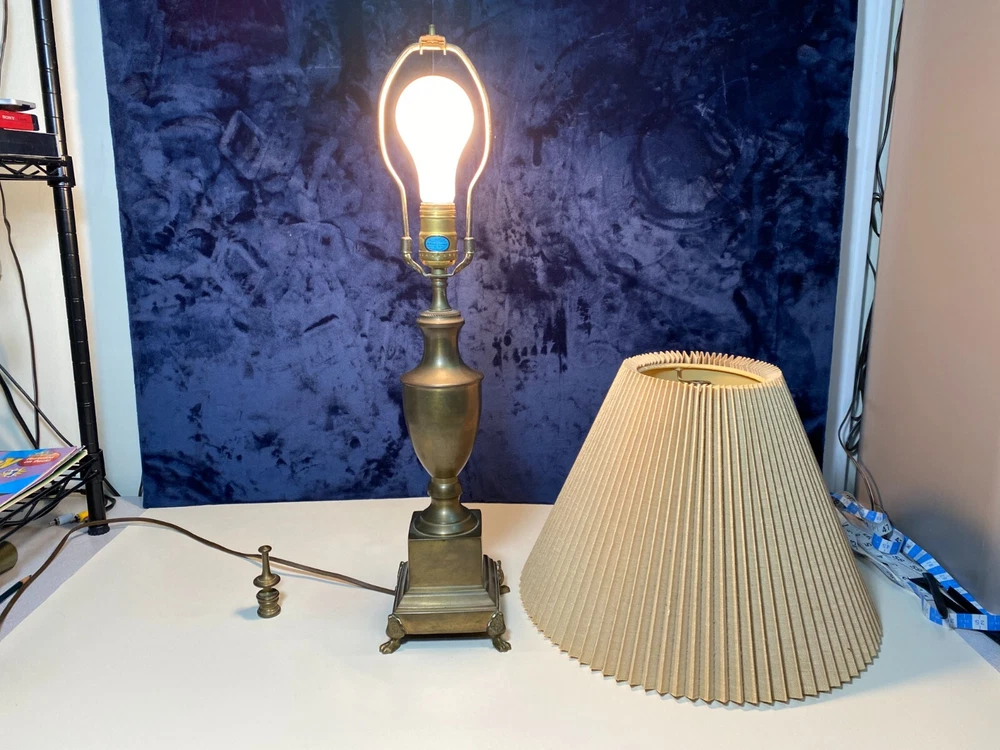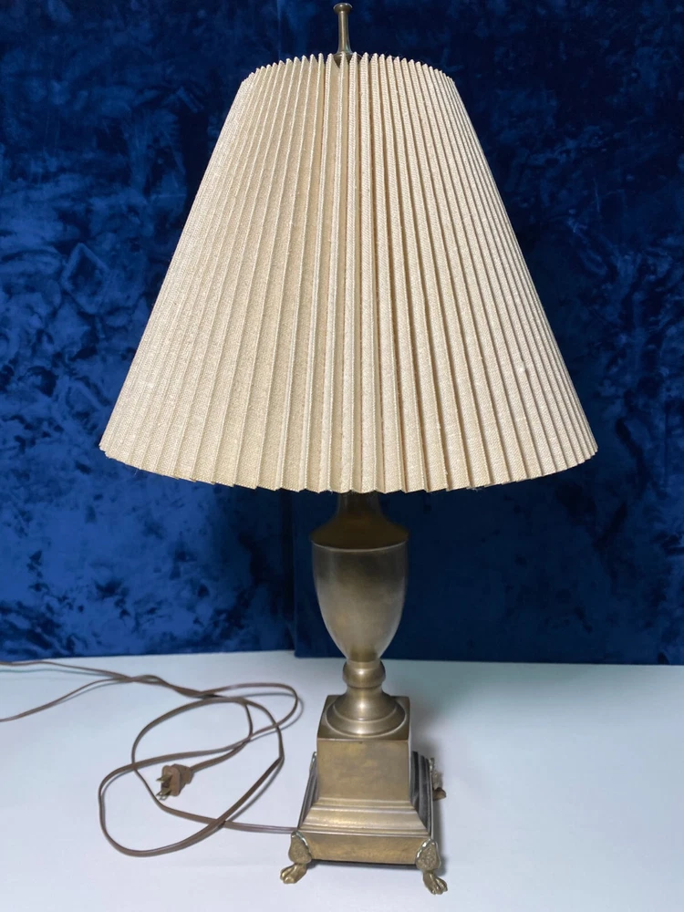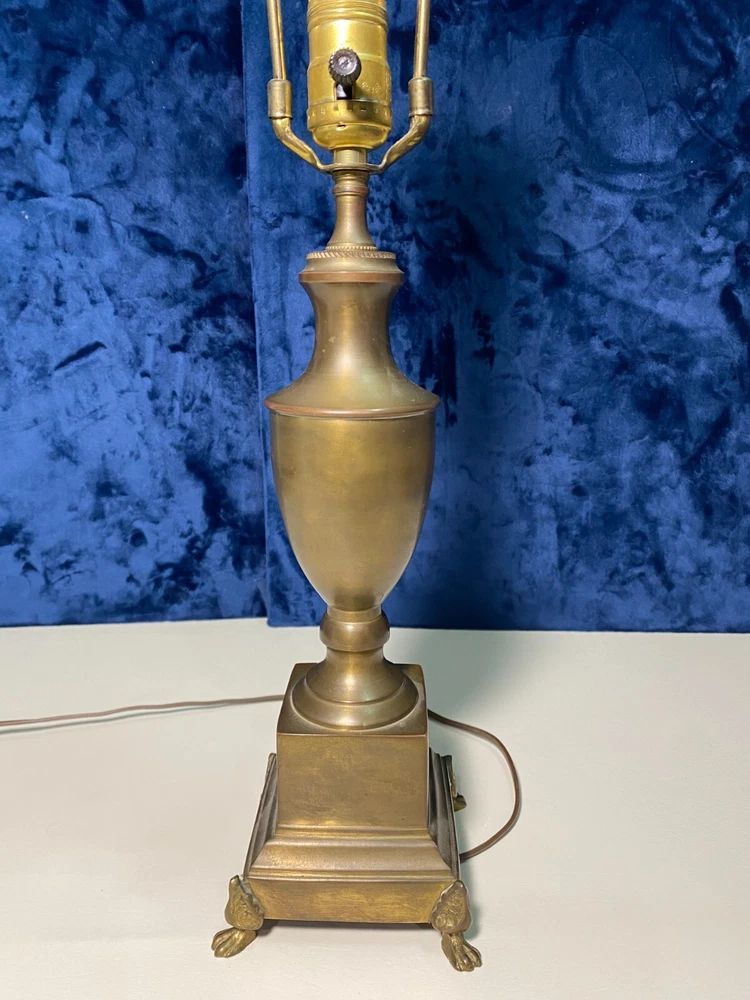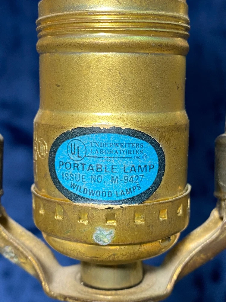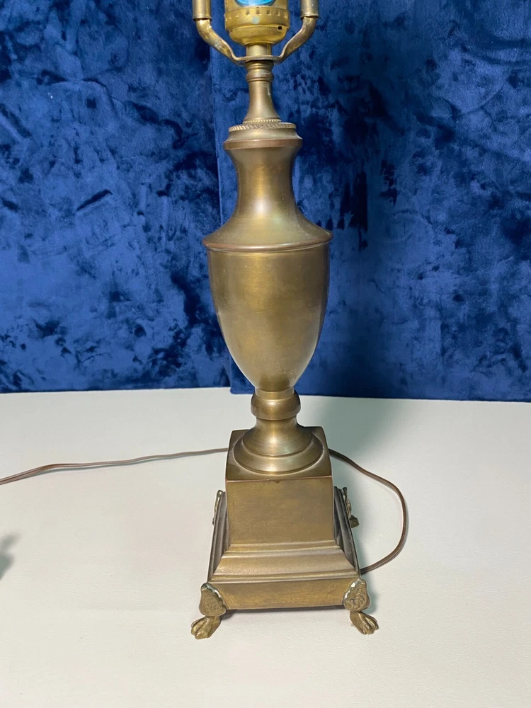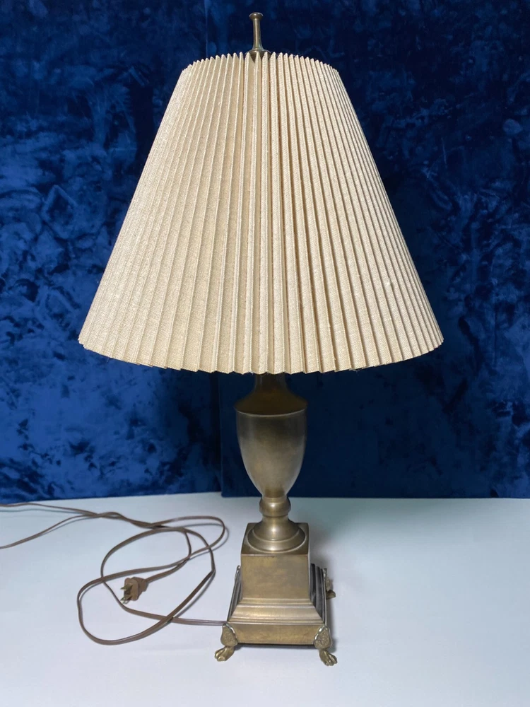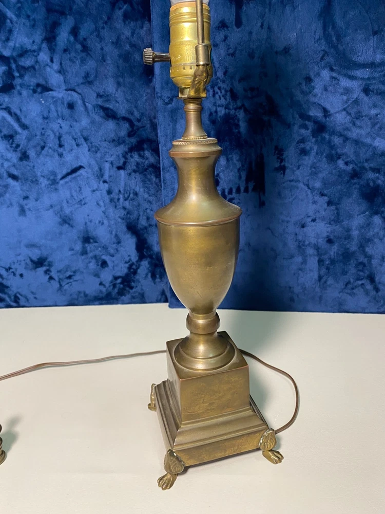 Vintage Wildwood Brass Footed Trophy Table Lamp with Artemis Studio Shade 3 Way Switch 24 3/4" Tall and 7 LBS