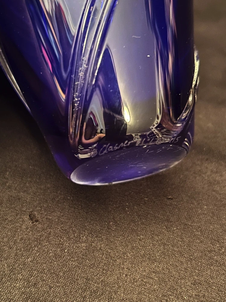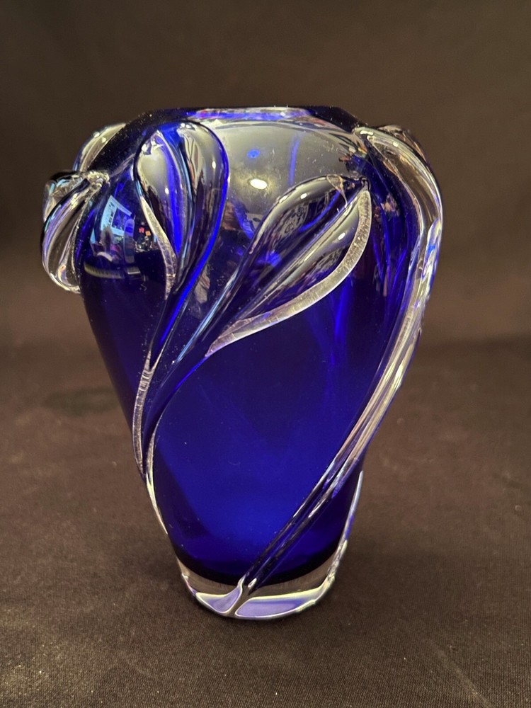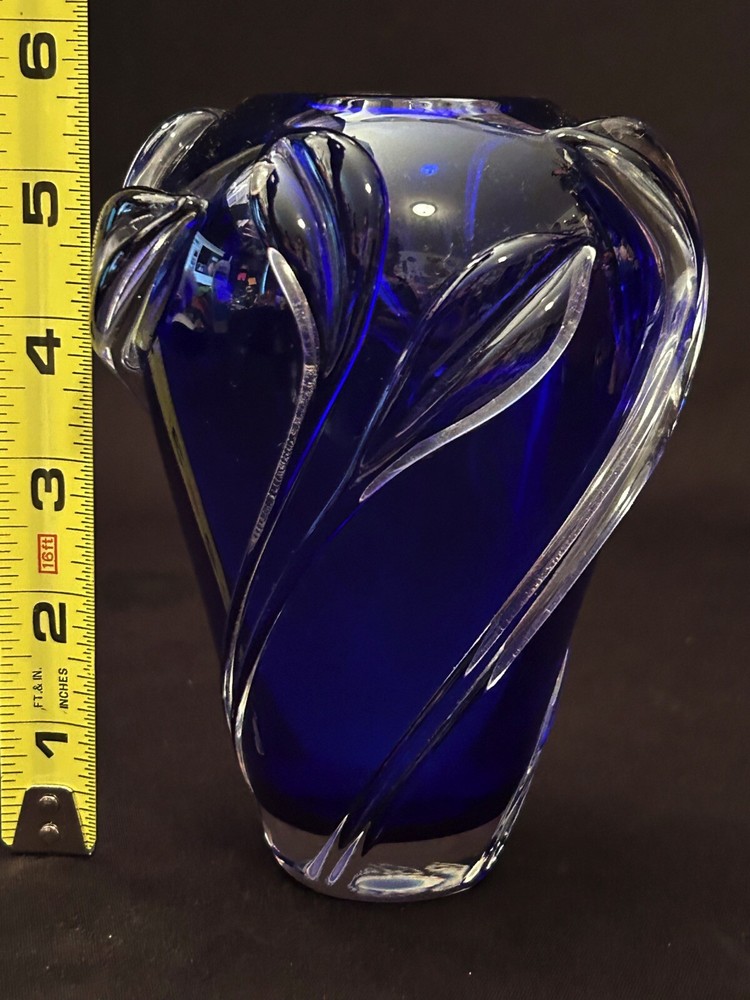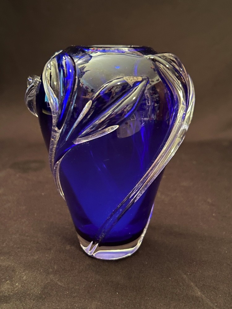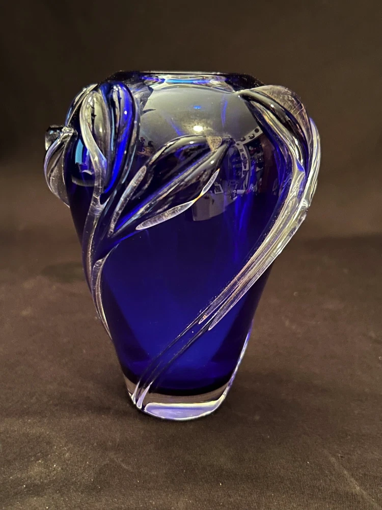 Vintage William Glasner Studio Art Glass Cobalt Blue & Clear Glass Leaf Vase This item is in good used condition p lease see pictures as they are part of the description. This is a nice vintage signed William Glasner Studio art glass vase, no damage. No other issues. S hipping costs account for postage and packing materials to ensure safe delivery. M essage me if you have any questions or need additional pictures. I always leave deep cleaning to new owner. For fear of removing any patina, I generally only do a light clean. Remember most items I deal in have age to them and are rarely perfect. You be the judge. Zoom in on pics. T his is sold as is. Ask ?’s I always leave cleaning to new owner. What you see is what you get. Please remember most items I deal in have age to them and are rarely perfect. You be the judge. Zoom in on pics. T his is sold as is. Ask ?’s The item(s) pictured is the one that you will receive . I will only accept returns if item is not as described or breaks in shipping. Please see pictures for detail as pictures are part of my description. Shipping cost includes packing materials, to ensure safe delivery additional insurance on most items over $25, and postage cost. If you don’t want to pay for shipping, don’t bid on items. I do try my very best to be as accurate and honest as possible in my descriptions. I also realize that opinions on the condition of an item can vary, depending on the person who is looking at it. Please ask specific questions if I don't give enough details.......or to correct me if I get something wrong. I welcome any help or knowledge that fellow eBayers would like to share Please read the entire description and look at pictures carefully prior to bidding. I have other items listed in my store. I always leave positive feedback once positive feedback is left for me. Follow me on eBay, I’m always adding new items. Email me with any questions I will always combine items for cheaper shipping if possible. Our Policy Shipping Outside of US Ebay Global Shipping Only Payment Winning bidders must pay for an auction within 3 business days or item will be relisted. Paypal is the preferred type of payment. Return Policy Returns accepted, shipping is paid by buyer unless item is not as described. _gsrx_vers_1516 (GS 9.3 (1516))