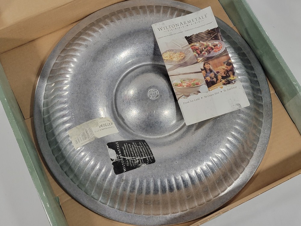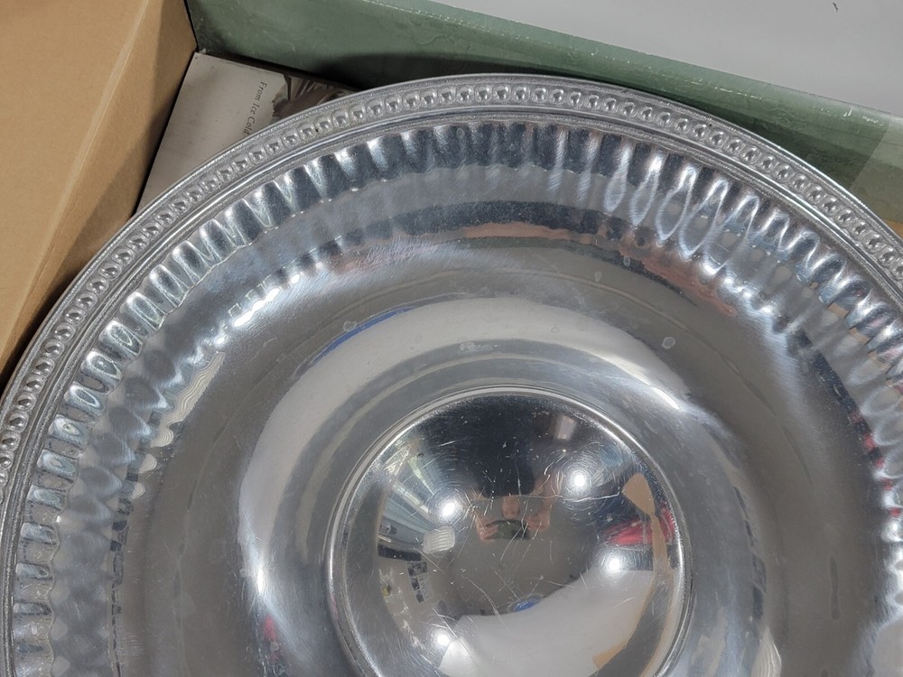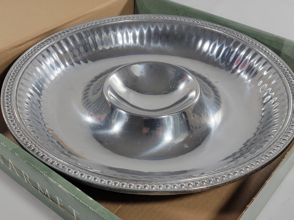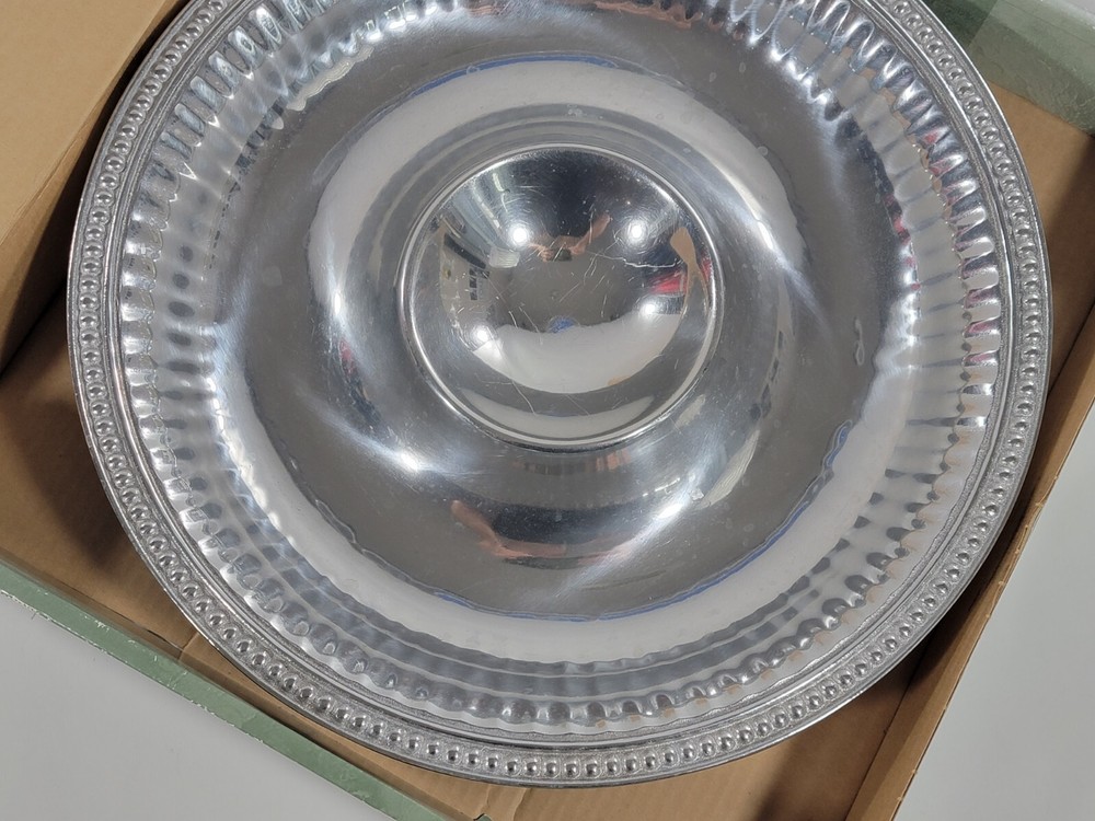 Vintage Wilton Armetale Metal Flutes & Pearls Large Round Chip Dip Server 15.5"....