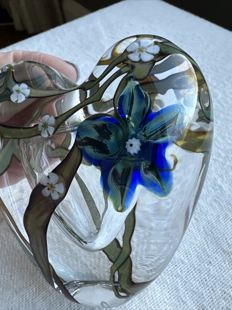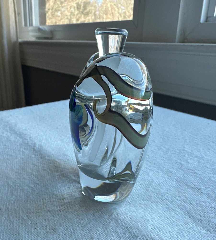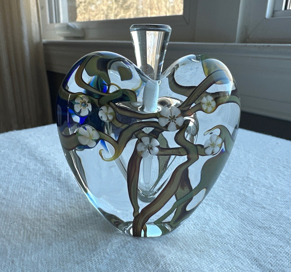 This vintage perfume bottle from Zellique Studio is a true work of art. The heart-shaped design is adorned with delicate floral patterns, making it a beautiful addition to any collection. The bottle is made of high-quality glass and has been lovingly crafted with great attention to detail. Whether you're a collector of vintage perfume bottles or simply looking for a unique decorative piece, this Zellique Studio creation is sure to impress. The bottle is suitable for holding your favorite scent or simply displaying as a stunning work of art. Dimensions are approximately 3.5”x1.5”x4”. No chips or cracks. Please look closely at the photos as they are part of the description Thank you for looking