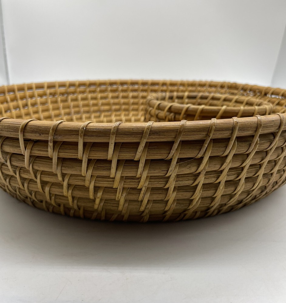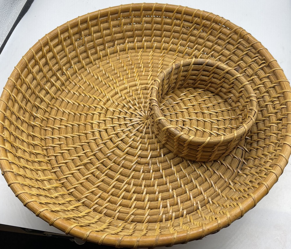 Vintage large rattan chip and dip tray. 14” across, 3” deep Excellent condition