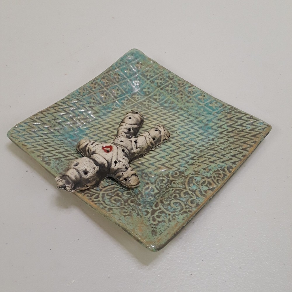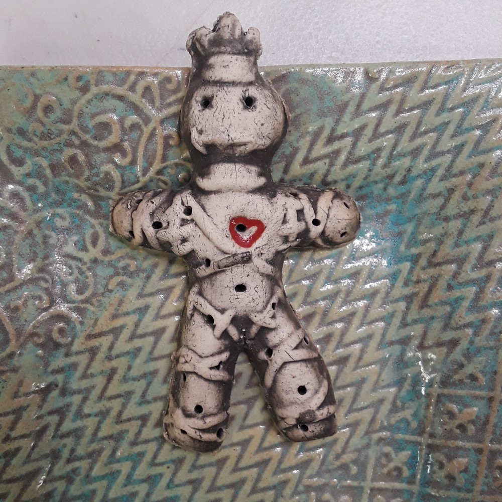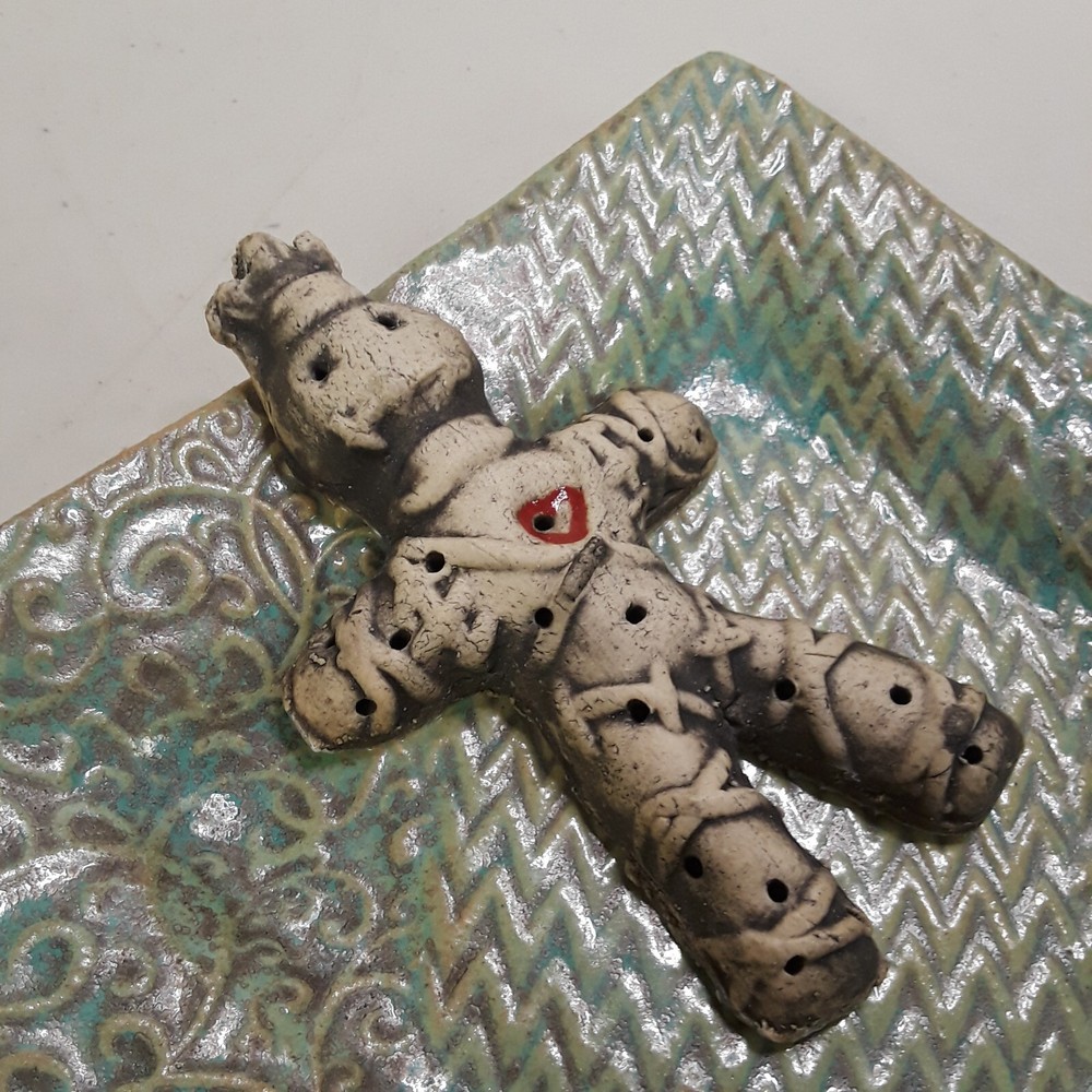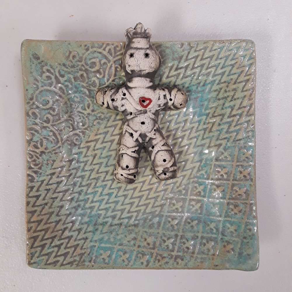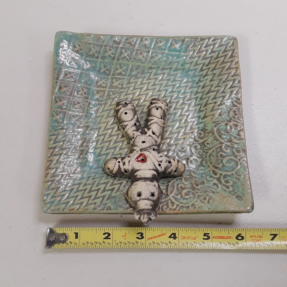 Voodoo Figure Trinket Tray / Ashtray Black Magic Curio. Think of the endless fun you will have burning your subject with your cigarette or poking with toothpicks! Excellent, new condition. 6.25"x6.25" square. Handmade ceramic pottery. Shipped from Atlanta GA USA SML3