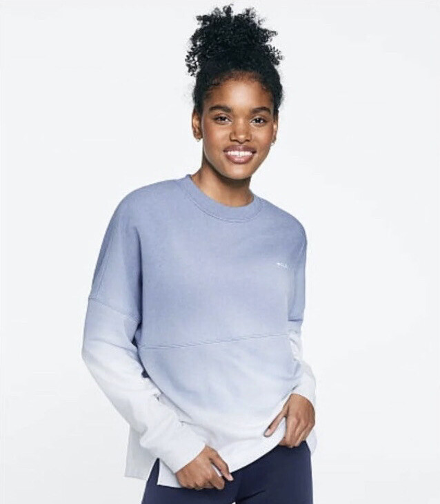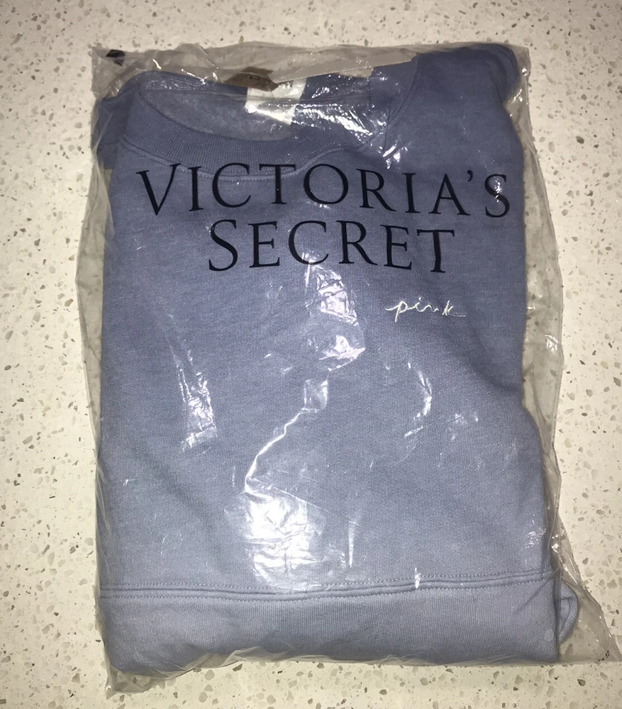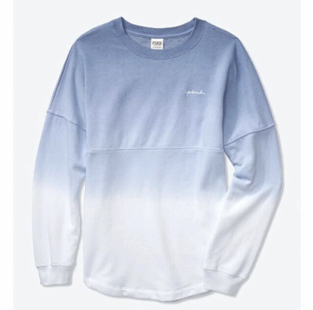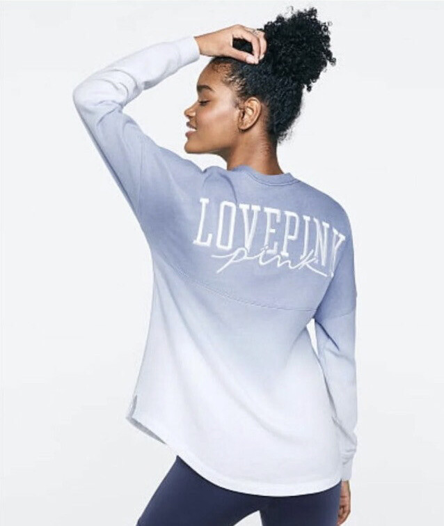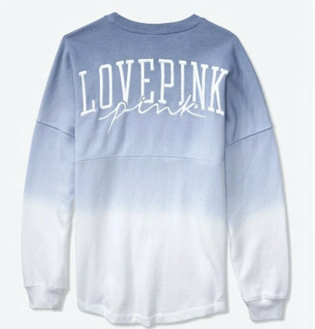 Vs Victoria’s Secret Pink Varsity Crew Sweater Pullover Top L Product Description Color: Dusty Iris Reverse Dip Dye Size: L Oversized fit Crew neckline Rib cuffs and neckband 28.5” body length Imported cotton/polyester PRICE FIRM
