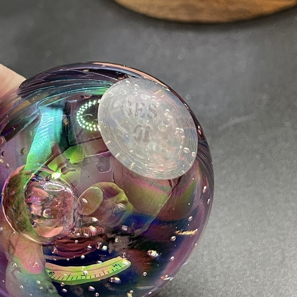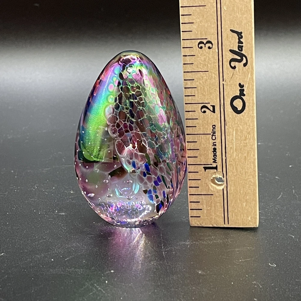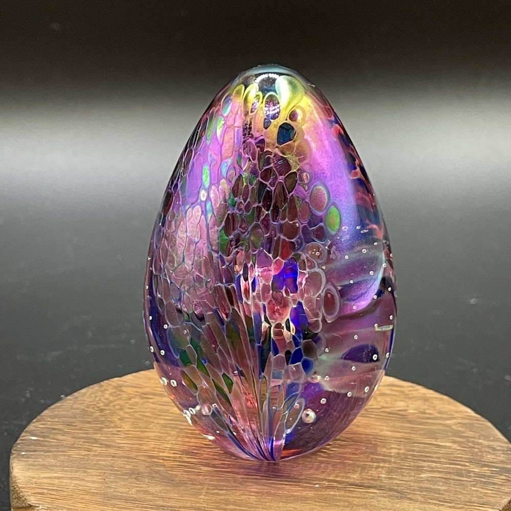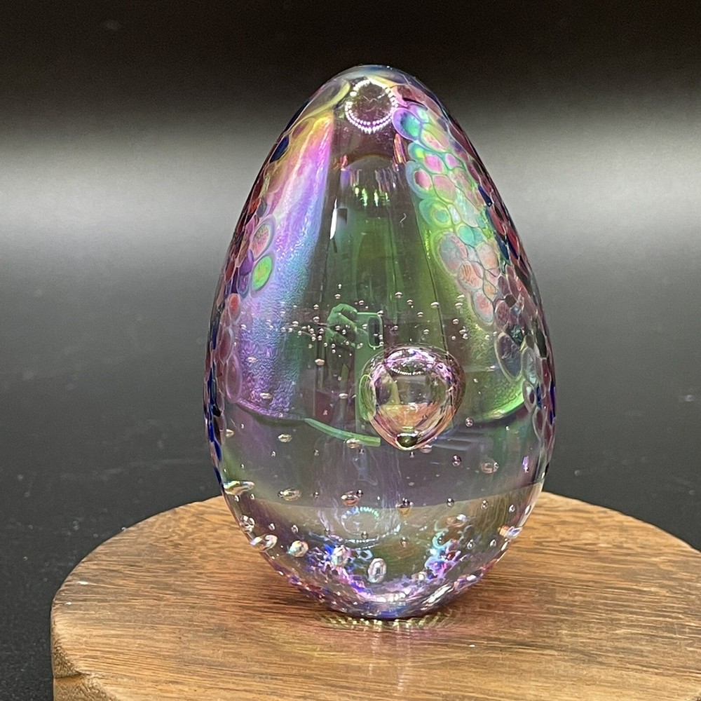 Vtg. 1991 Glass Eye Studio GES Iridescent Egg Shaped Paperweight. Please see photos. ....